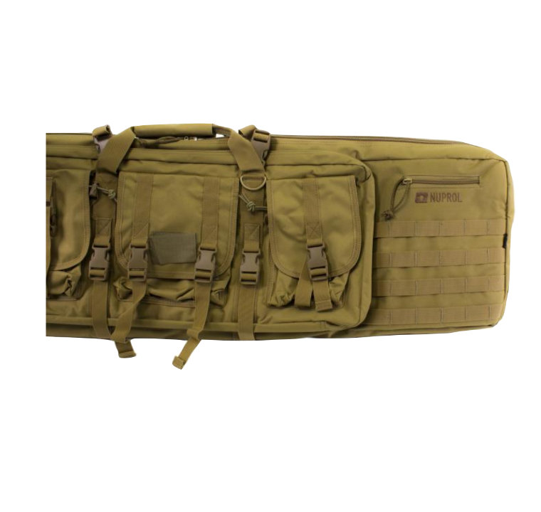 Nuprols Deluxe Soft Rifle Bag is designed to transport your airsoft weapons and equipment together.  Up to two rifles can be carried in the main section which has padded outer walls to protect them from knocking against anything outside the case and also a padded divider to stop the rifles knocking against each other.