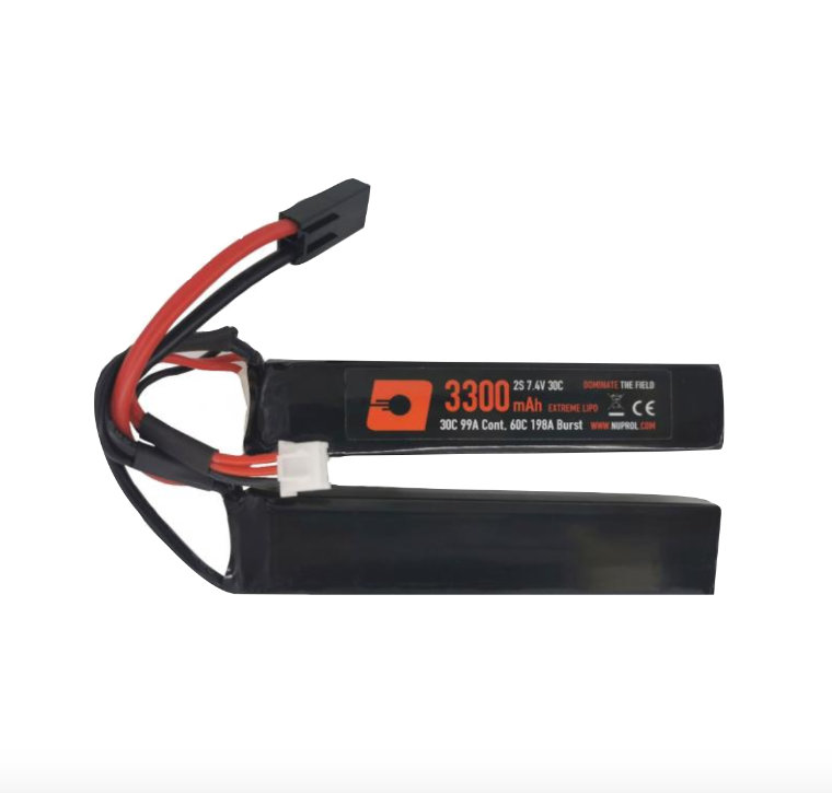 Type: LiPo – Lithium Polymer Voltage: 7.4 v Capacity: 3300 mAh Connector: Small Tamiya Cell Count: 2 Continuous Rate: 30 C at 99 A Burst Rate: 60 C at 198 A Configuration: Nunchuck Dimensions: (1) 20 x 21 x 128 mm (2) 20 x 21 x 128 mm