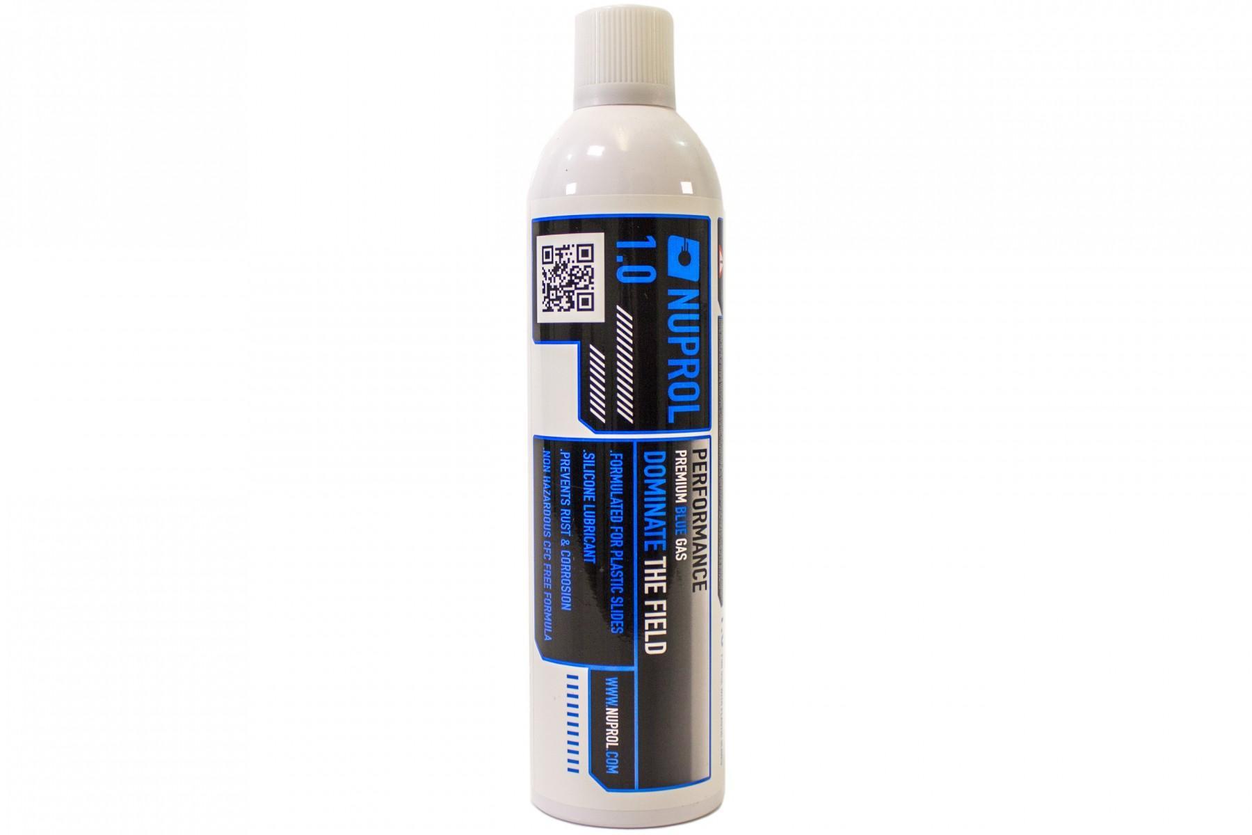 The 1.0 Blue/White gas is specifically designed by Nuprol for powering down Airsoft guns. It is also great for use with replicas with plastic slides or display type functioning replicas.