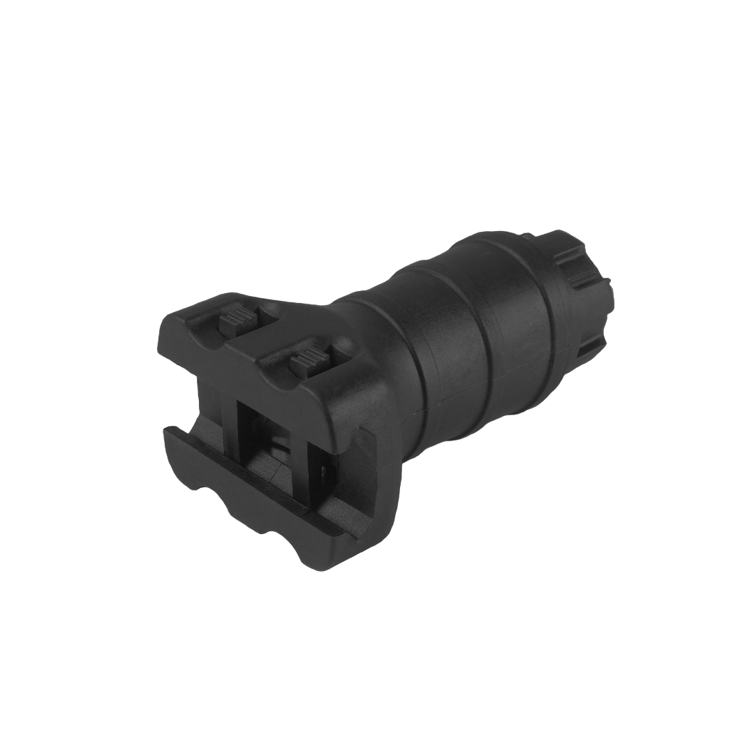 Improve rifle stability with the NUPROL Stub-Ridge Grip. The grip is hollow with a threaded base allowing for the storage of items such as batteries on the field.