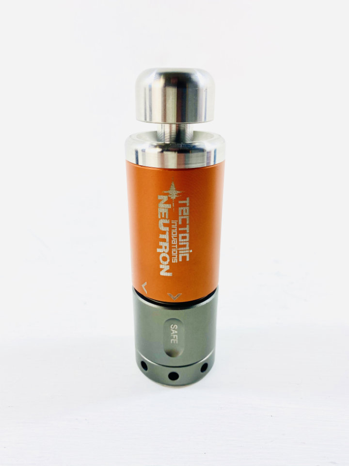 Operating the Neutron is simple. Unscrew your base, pop a .209 primer into the slot and Glow tubes if required and reassemble. The base features clearly marked positions: SAFE, FIRE. Simply give the base a twist, feel a click as you turn from SAFE to Fire, and drop the grenade where you want the bang to happen! Dead easy!