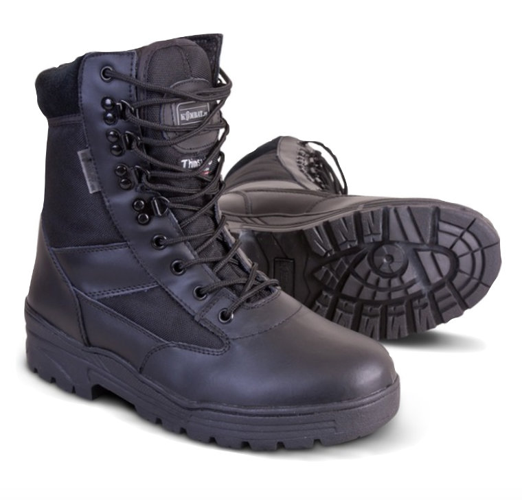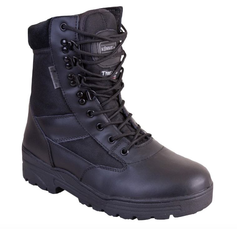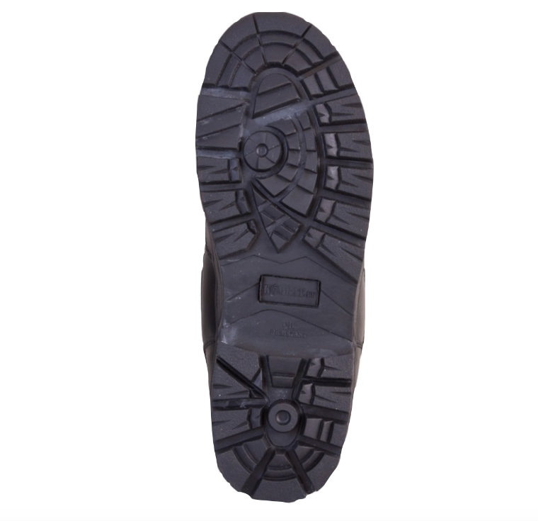 • Black half leather boot with leather lining padded cow suede collar • 3M Thinsulate lining • PU sole with steel shank • Nylon laces • Bronze eyelets • Removable EVA inner sole