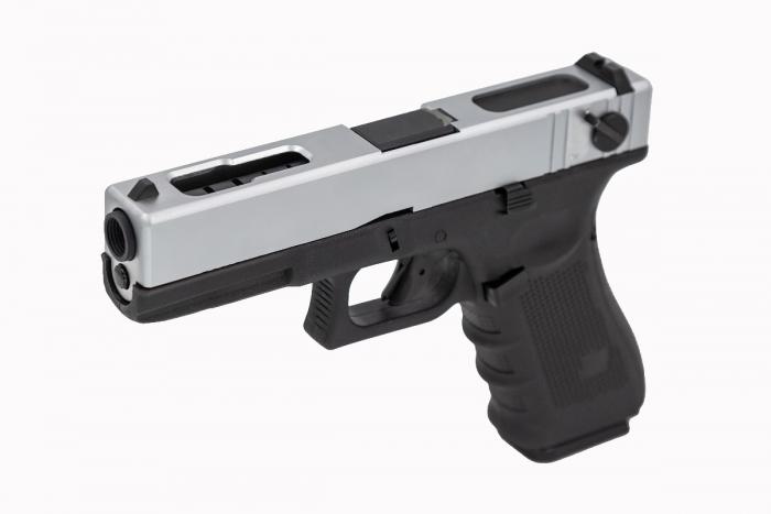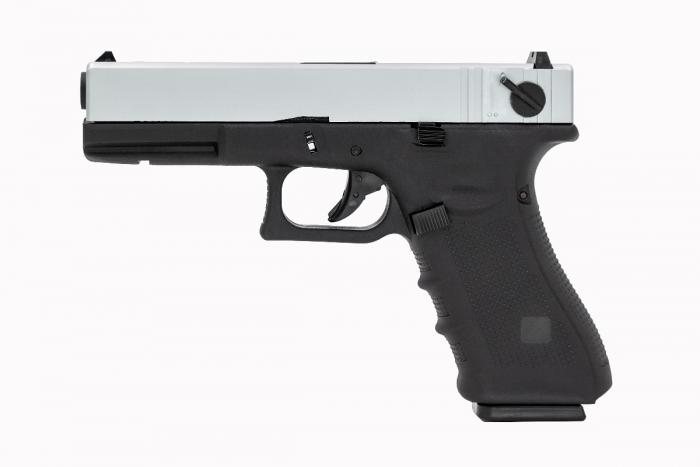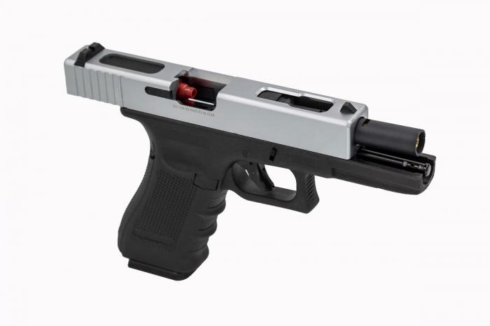 The G18 Full Auto GBB Pistol is a Gas Blowback Airsoft Pistol The weapon is constructed with a lightweight and durable Polymer Lower Frame and an Alloy Slide. The pistol features a Selectable Fire switch for semi or full auto functions The Pistol comes with standard sights. The Pistol features a specially designed Gen4 Frame which allows the grip to fit well in the players hand, with interchangeable back straps allowing users with different sized hands to comfortably use the weapon