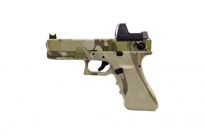 The VCRA states that you can only purchase a Realistic Imitation Firearm if you have a defence that proves you are an active airsoft skirmisher. If you don't have a valid defence the weapon has to be painted more than 51% in a bright colour (two-toned).