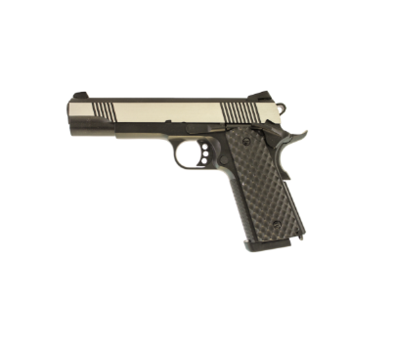 This is a modernization of the classic 1911A2 pistol which uses a 15 BB capacity single stack magazine, metal body & slide, fixed Novak style sights, high grip rubberized plastic grips, working hammer, and the standard 1911 working double (ambidextrous thumb-slide lock & grip) safety