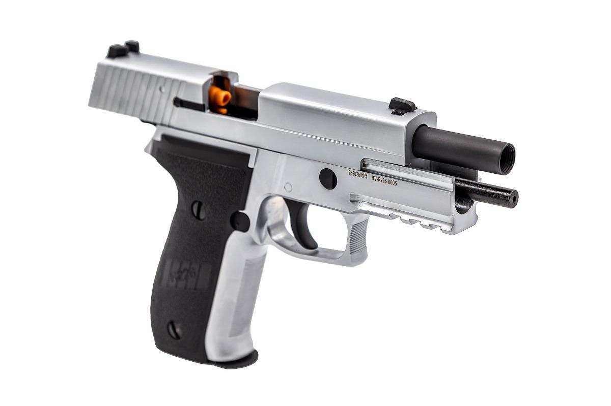 The R226 is full metal construction. RAVENs experience with other GBB models ensures first-class gas efficiency, easily emptying the standard 20R magazine when unloading downrange. Customers have the option of R226s with or without the 20mm rail, allowing for the attachment of a range of accessories such as torches or laser units. All furniture is functional including the de-cocking lever for returning the hammer to a safe position without discharge.