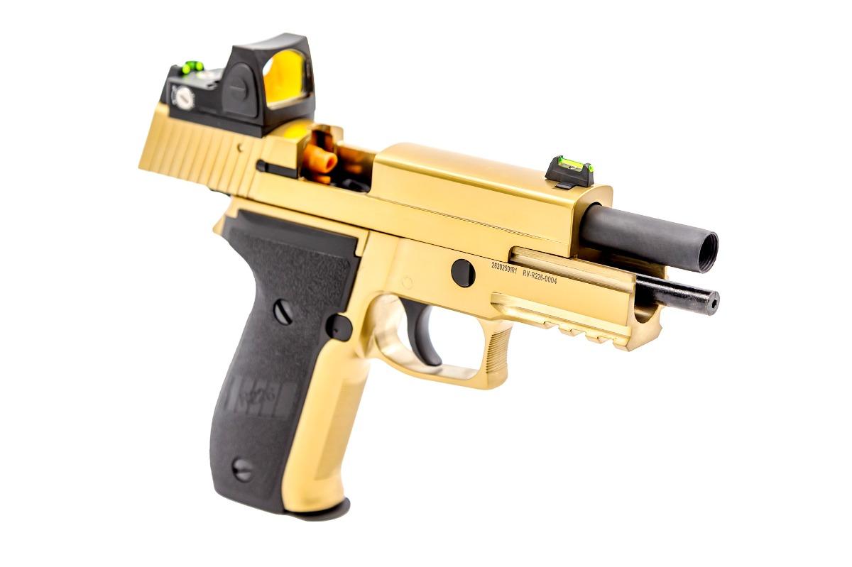 The R226 features an exceptionally ergonomic design. Everything from the pistol grip to the finish gives the R226 a level of comfort not found on many other GBB Pistols. The use of electrostatic painting methods ensures a non-porous, stain-resistant finish that will keep the R-Series looking its best for longer, game after game. The in-hand feel is further enhanced by the lightly textured pistol grip, wrapped around the rear of the grip, it feels like the R226 wants to force its way into the palm of your hand and not let go. The traditional chamfered, dual-action long pull trigger rounds off the feel-good shooting experience before we have even got onto the performance of the R226.