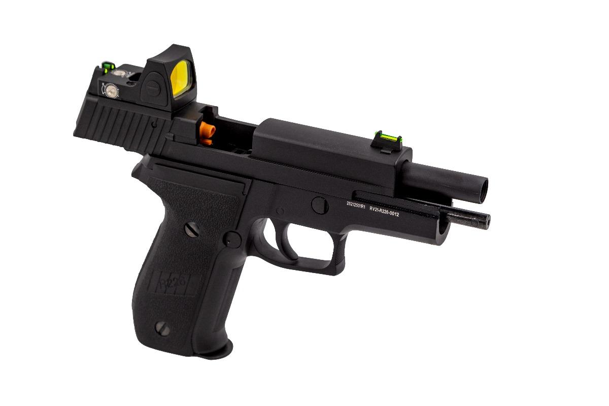The R226 features an exceptionally ergonomic design. Everything from the pistol grip to the finish gives the R226 a level of comfort not found on many other GBB Pistols. The use of electrostatic painting methods ensures a non-porous, stain-resistant finish that will keep the R-Series looking its best for longer, game after game. The in-hand feel is further enhanced by the lightly textured pistol grip, wrapped around the rear of the grip, it feels like the R226 wants to force its way into the palm of your hand and not let go. The traditional chamfered, dual-action long pull trigger rounds off the feel-good shooting experience before we have even got onto the performance of the R226.