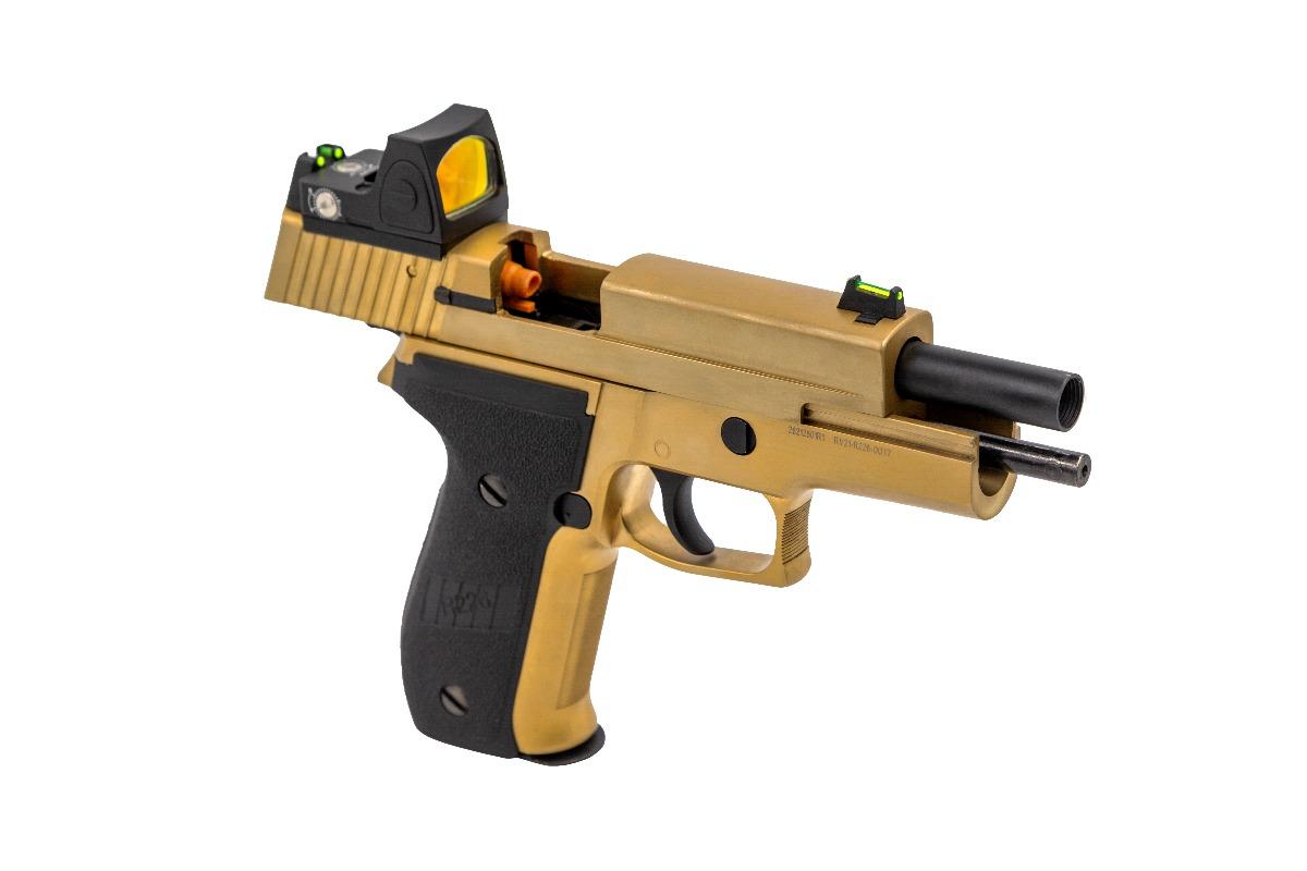 The R226 features an exceptionally ergonomic design. Everything from the pistol grip to the finish gives the R226 a level of comfort not found on many other GBB Pistols. The use of electrostatic painting methods ensures a non-porous, stain-resistant finish that will keep the R-Series looking its best for longer, game after game. The in-hand feel is further enhanced by the lightly textured pistol grip, wrapped around the rear of the grip, it feels like the R226 wants to force its way into the palm of your hand and not let go. The traditional chamfered, dual-action long pull trigger rounds off the feel-good shooting experience before we have even got onto the performance of the R226.