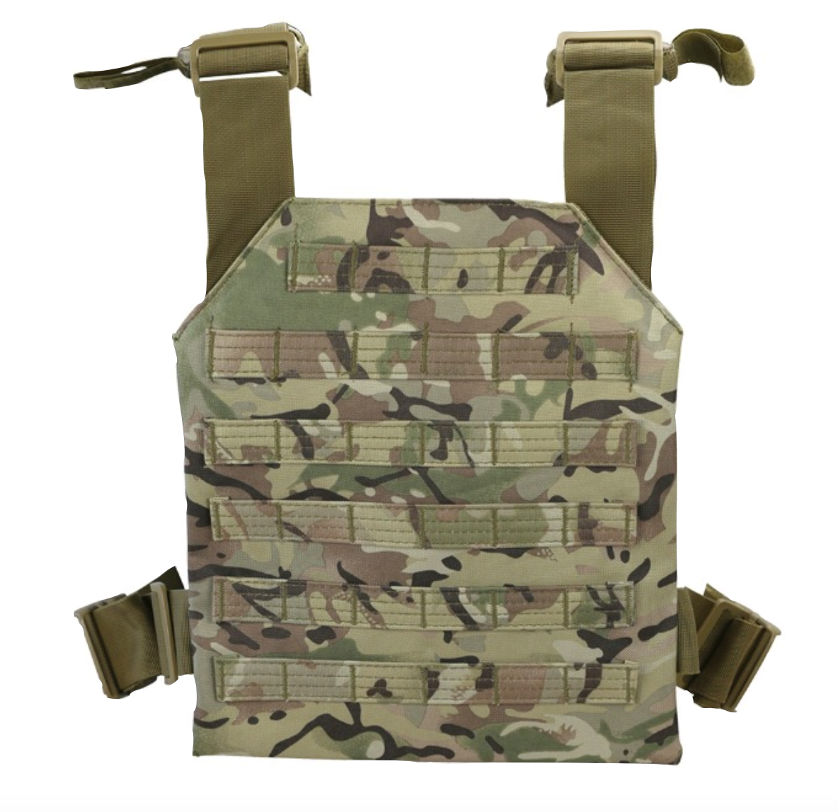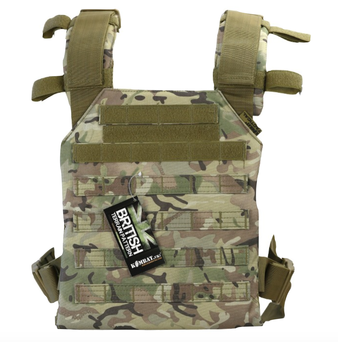 The Kombat Spartan Plate Carrier is specifically designed to be a lightweight plate carrier with molle front and rear platforms to aid mobility in battle situations.