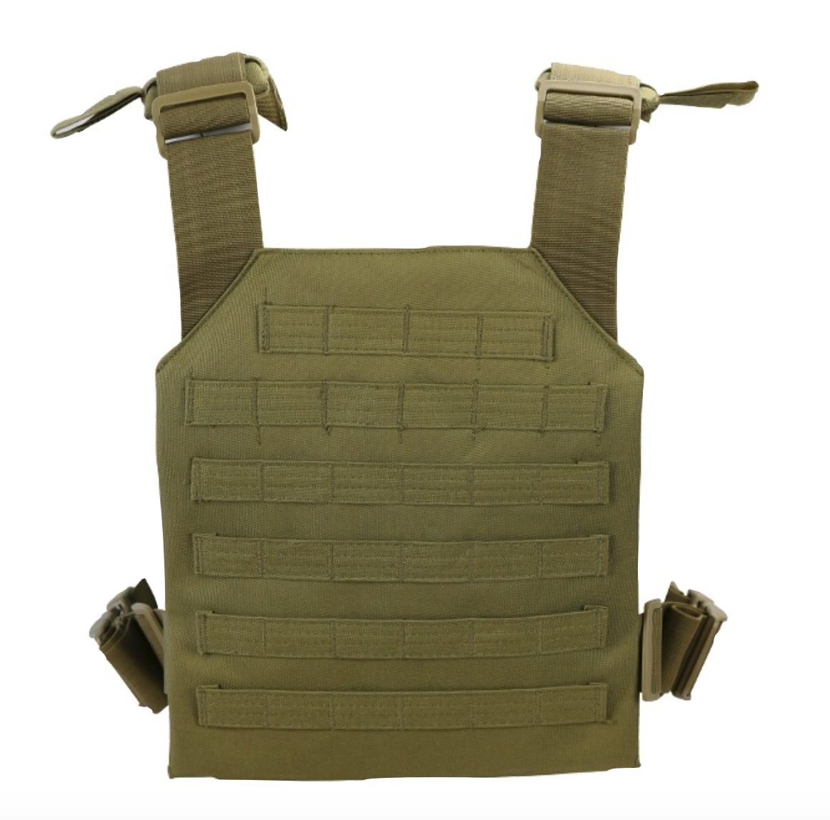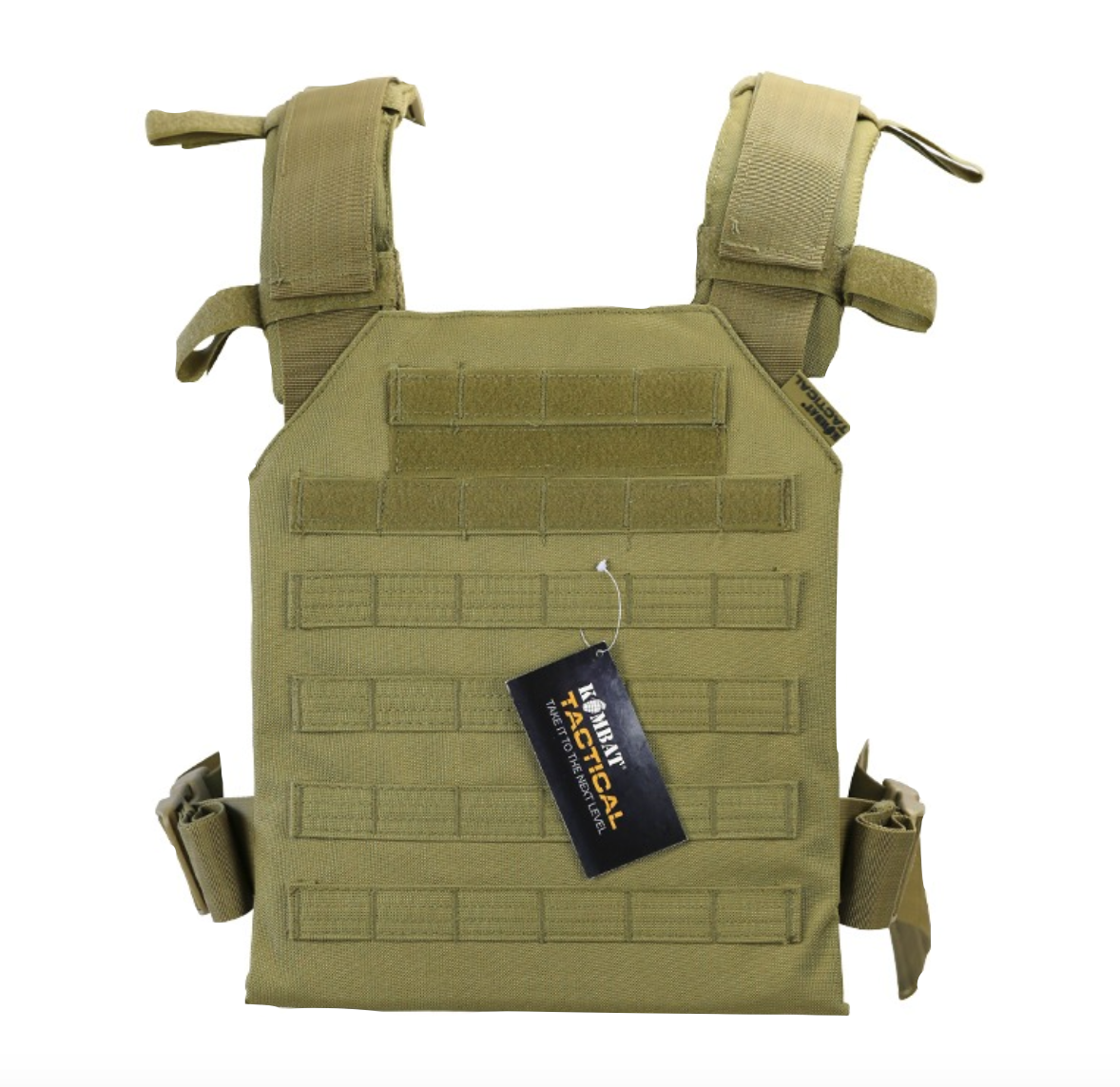 The Kombat Spartan Plate Carrier is specifically designed to be a lightweight plate carrier with molle front and rear platforms to aid mobility in battle situations.