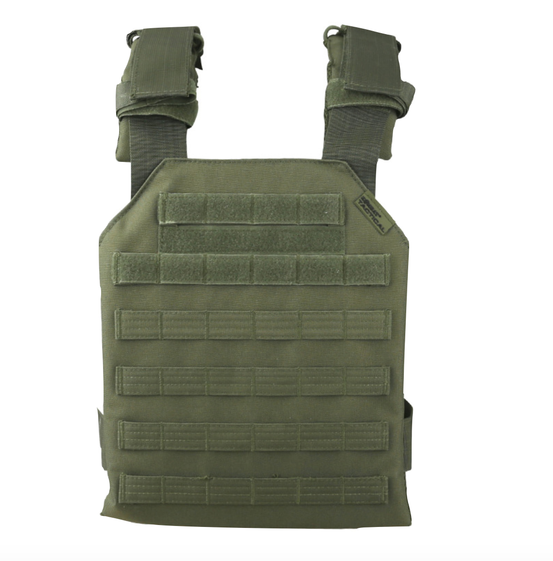 The Kombat Spartan Plate Carrier is specifically designed to be a lightweight plate carrier with molle front and rear platforms to aid mobility in battle situations.