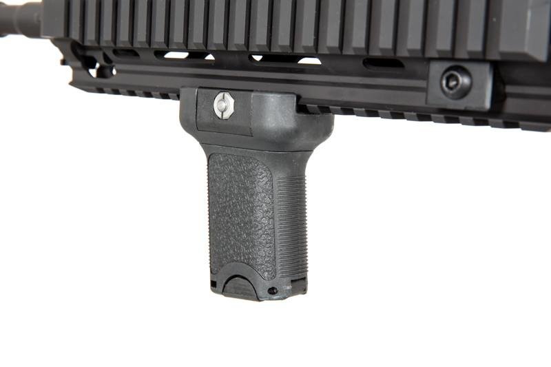 SA-H20 carbine replica is equipped with a handguard in RIS / Picatinny mounting system that can serve as a mount for various tactical accessories: flashlights, grips, laser sights, and optical sights. The barrel features a muzzle device on a 14 mm CCW thread. The top RIS rail features a set of iron sights.