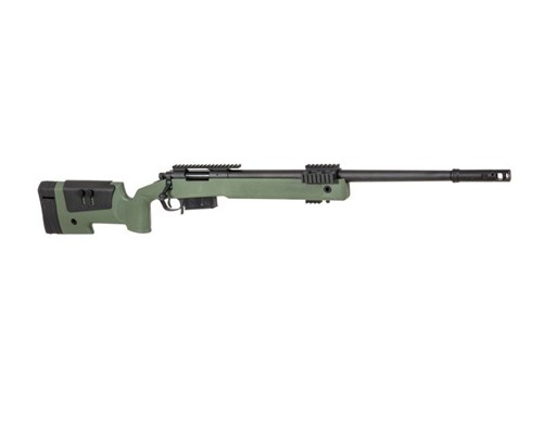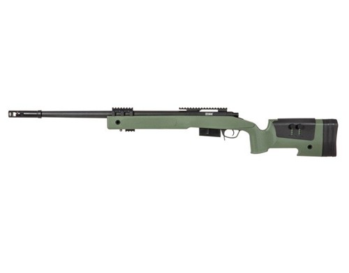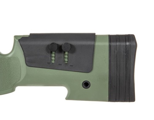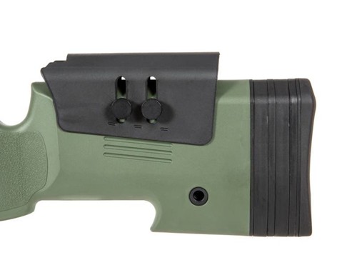 Specna Arms sniper rifle replica features a simple and reliable bolt-action mechanism, which means the replica needs to be reloaded before firing. The replica is made of metal and reinforced polymer. Parts made of metal include the entire set of the external barrel along with the chamber, trigger, and charging handle as well as RIS accessory rails and all assembly elements such as screws. The chassis with the stock, stock pad, and magazine are made of solid polymer. The stock pad features a comfortable, rubber pad, whose thickness can be adjusted using a set of exchangeable overlays. In combination with the adjustable cheek pad it enables adjusting the stock to user preferences.