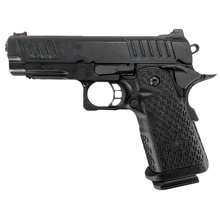 The Staccato C2, a renowned compact carry gun, has been meticulously replicated in this airsoft model. Known for its superior grip, reduced recoil, and improved cycling speed, the real Staccato C2 is celebrated for redefining what’s possible in a compact firearm. This airsoft version brings those same qualities to your hands, ensuring an authentic and exhilarating experience.