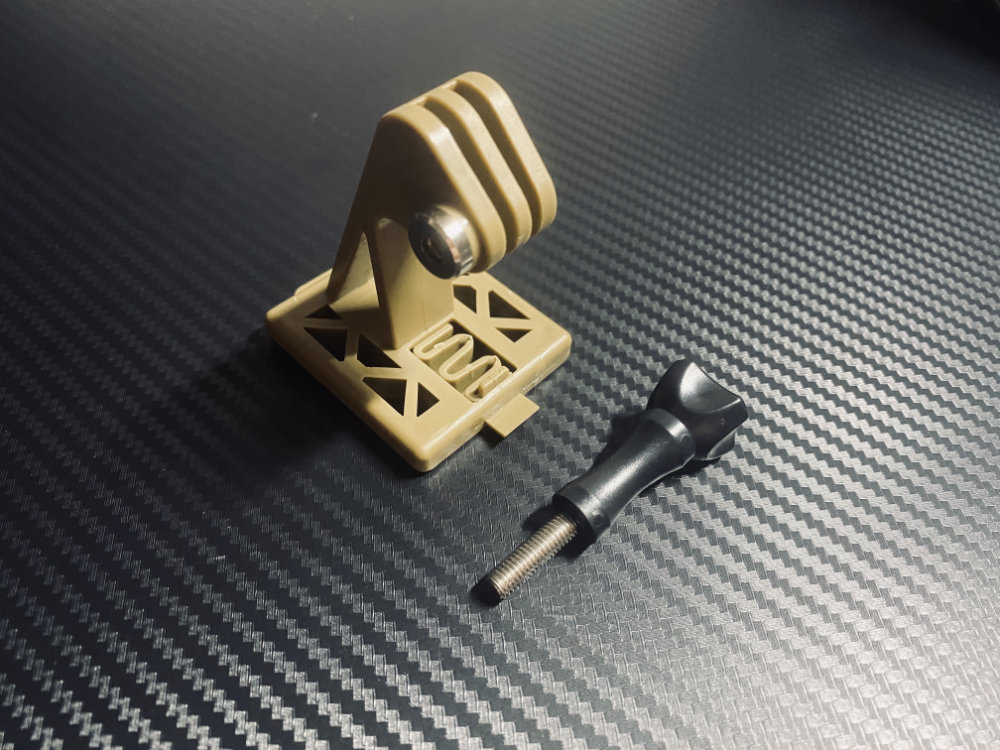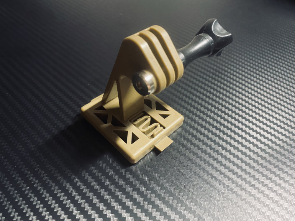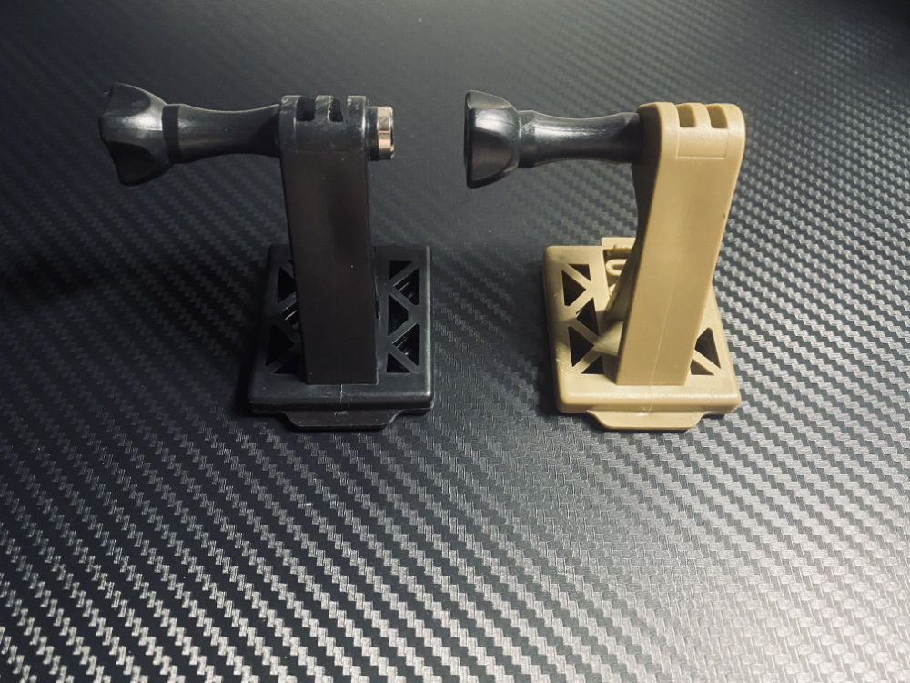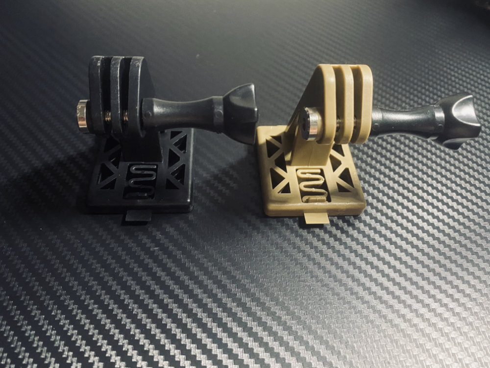 Solid durable action camera mount for tactical fast helmet and night vision devises. Features a High-quality build construction and easy to use mount enabling the use to quickly mount most action cameras to you fast helmet for in game use.