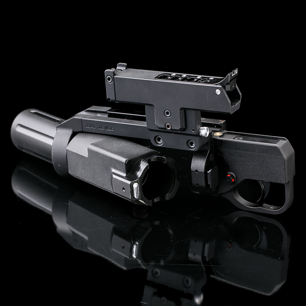 The TAG-ML36 Grenade Launcher with its rifled TAGinn barrel is a shell-less launcher that fires TAGinn projectiles directly without the need of any launching “Shell”. The TAG-ML36 is a mutual project of TAGinn and “Madritsch Weapon Technology”.