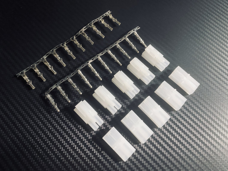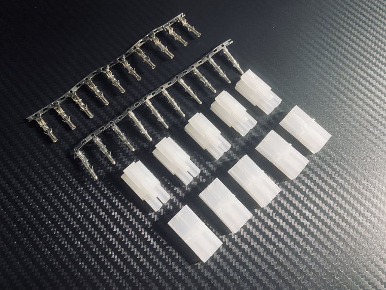 Product includes: x5 Pairs Tamiya Standard Plug type connectors with connection pins (silver plated contacts)