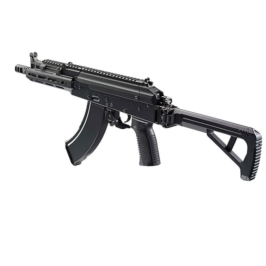 The Tokyo Marui AKX Gas Blowback Airsoft Rifle is a modern take on the classic AK47 platform. It features a short barrel, folding stock, and an M-Lok handguard, making it a versatile and adaptable rifle for both CQB and outdoor play. The AKX is powered by gas, and it delivers realistic blowback action with every shot. The hop-up unit is adjustable, so you can improve range and fine-tune your accuracy. The rifle also features a high-quality build with metal parts throughout.