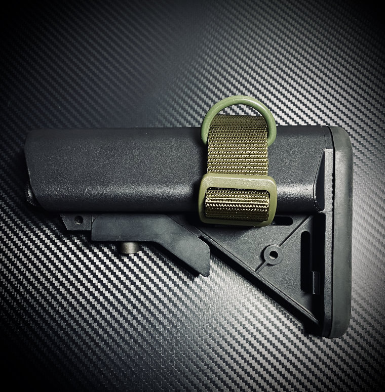- Heavy-duty nylon strap attaches to buttstock offering a secure/universal sling mounting point