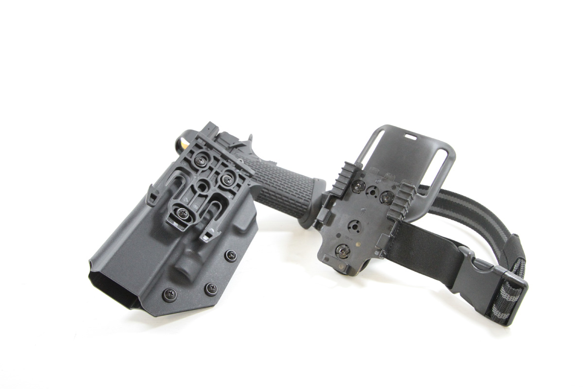 Our DC-1 Series Hi-Capa Holsters use the trigger and lower frame for retention meaning we have made one holster to fit them all. They have been designed using in-house scans of the actual weapon, they are then formed and finished by hand. Following rigorous testing, we know each and every holster will hold up to even the most brutal of play styles.