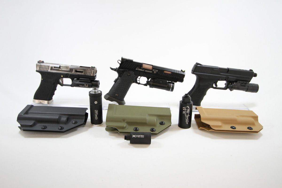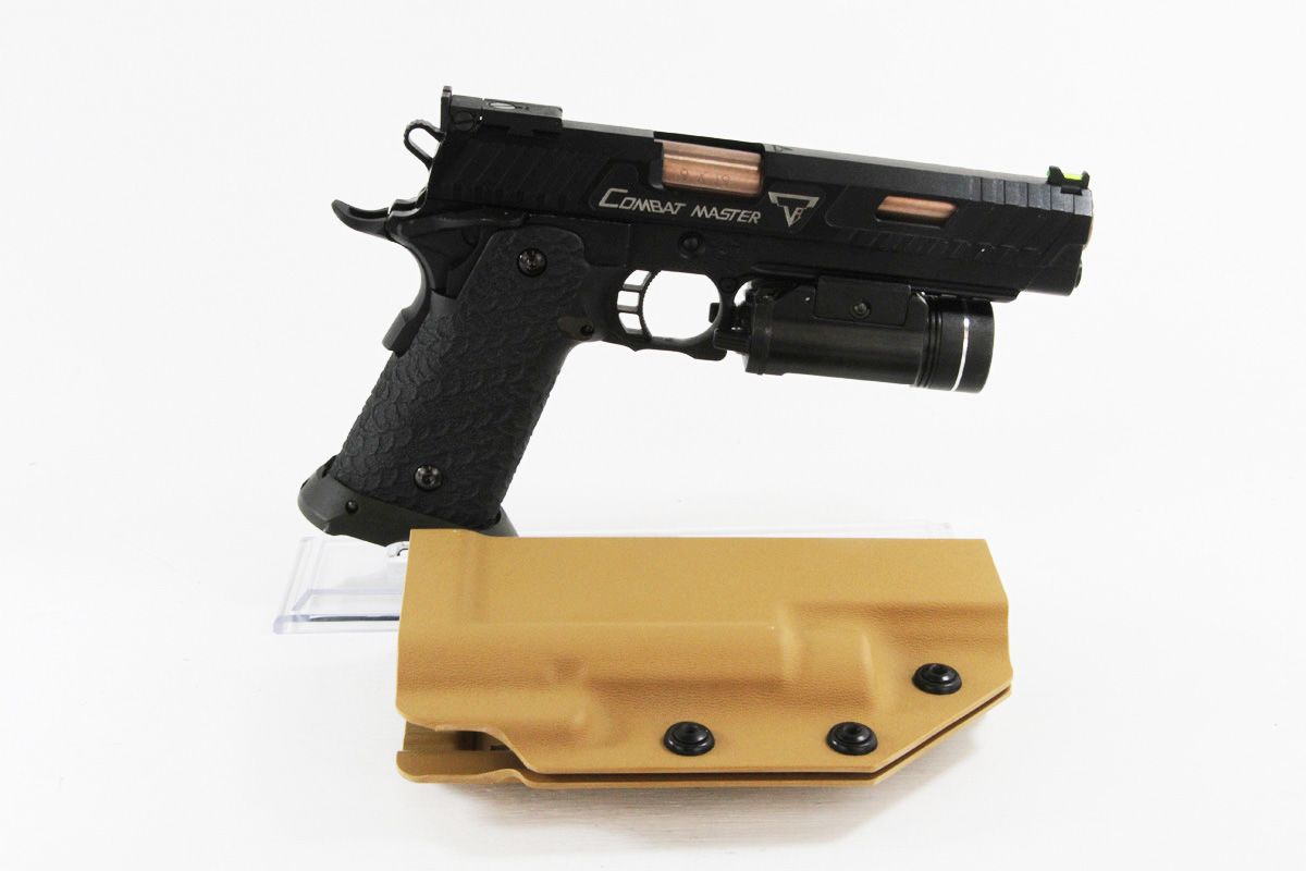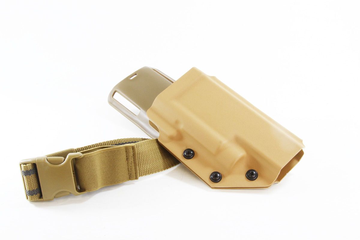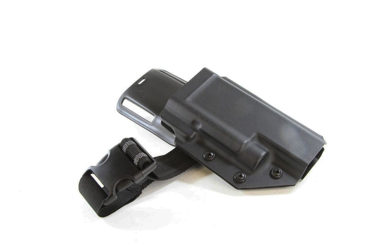 Our DC-5 Series TLR Holster uses your attached torch for retention, meaning you can run your favorite tracer alongside your torch. If you run the same torch on multiple weapons, then this is the holster for you. After extensive testing of over 150 pistols, we only found 3 pistols that wouldn’t fit; the full-size Desert Eagle, ASG USW and the Hudson. Our DC-5 Series will fit the bigger frame guns, like the FNX pistols, weapons with wide trigger guards, like the AAP and pistols with taller slides like the 1911.