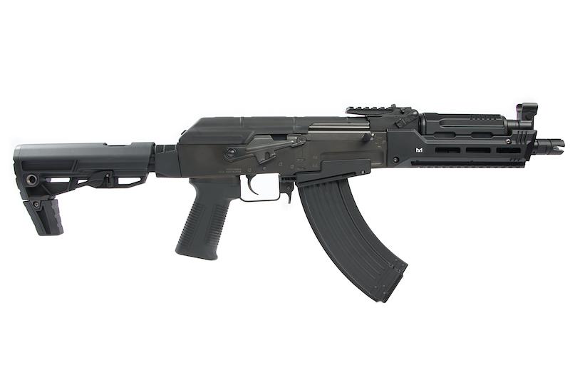 VFC Avalon Calibur Carbine, the newest kid on the block, comes with full metal body and high quality Avalon engravings. The extendable QRS stock allows you to adjust the length of rifle to fits your body! Comes with a 120 round Mid capacity QRS magazine. Metal flash hider can be screwed off for installation of a 14mm clockwise threaded silencer, just like the Marui M4A1. Dust cover can be flipped open to reveal hop-up adjuster. This particular version comes with an ambidextrous fire selector which is lefty friendly.