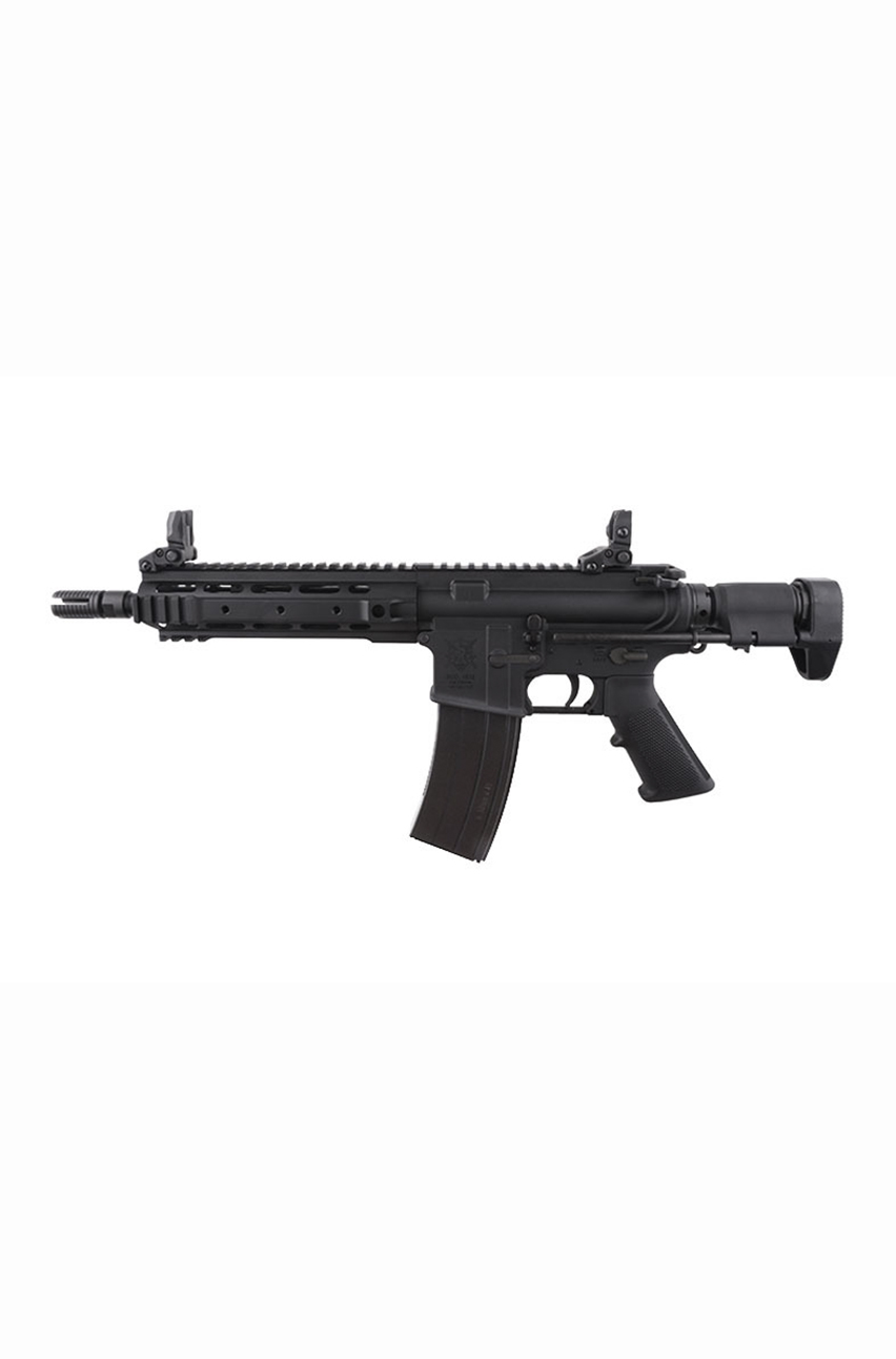 VFC VR16 M4 SABER VSBR was made of an alloy of zinc and aluminum, steel, and high-quality polymer. The receiver with an integrated set of RIS rails, the stock slide, and the magazine were all made of alloy. The pistol grip and stock were made of polymer. Small elements such as pins, outer barrel, or the flash hider were made of steel.