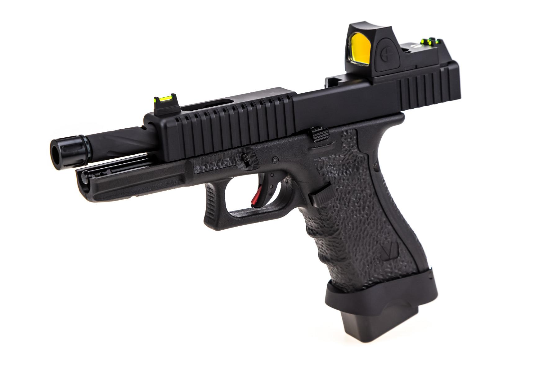 The TACTICAL option features a full-weight Aluminium Alloy Slide that features deep-groove ridge cuts on the forward & rear slide sections to help improve slide grip when racking your first BB. Colour choices are more reserved for the TACTICAL options, with all of the furniture & frame remaining black when choosing different slide colours (excluding GOLD & CHROME that have their furniture in the same colour as the slide).