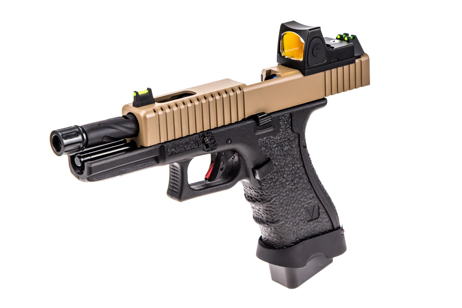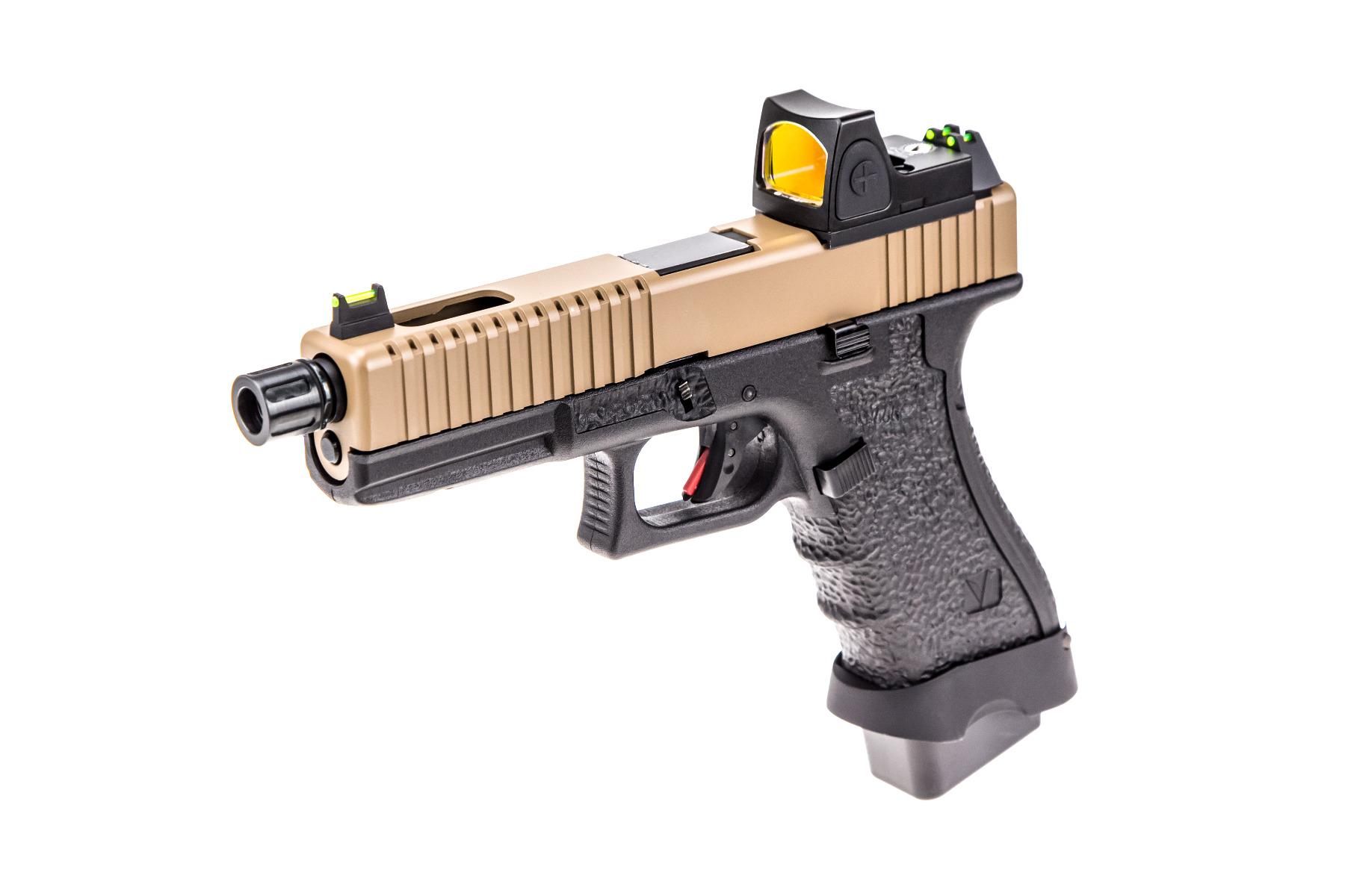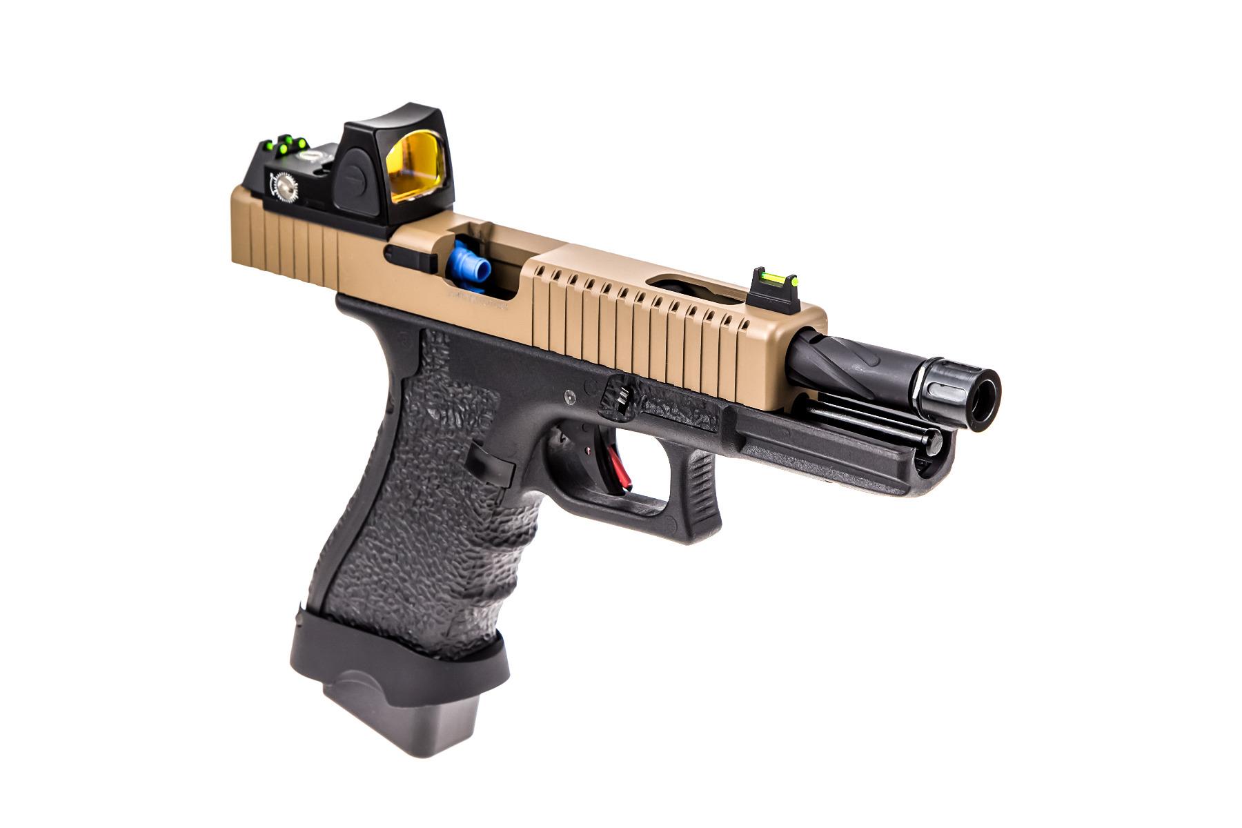 The TACTICAL option features a full-weight Aluminium Alloy Slide that features deep-groove ridge cuts on the forward & rear slide sections to help improve slide grip when racking your first BB. Colour choices are more reserved for the TACTICAL options, with all of the furniture & frame remaining black when choosing different slide colours (excluding GOLD & CHROME that have their furniture in the same colour as the slide).