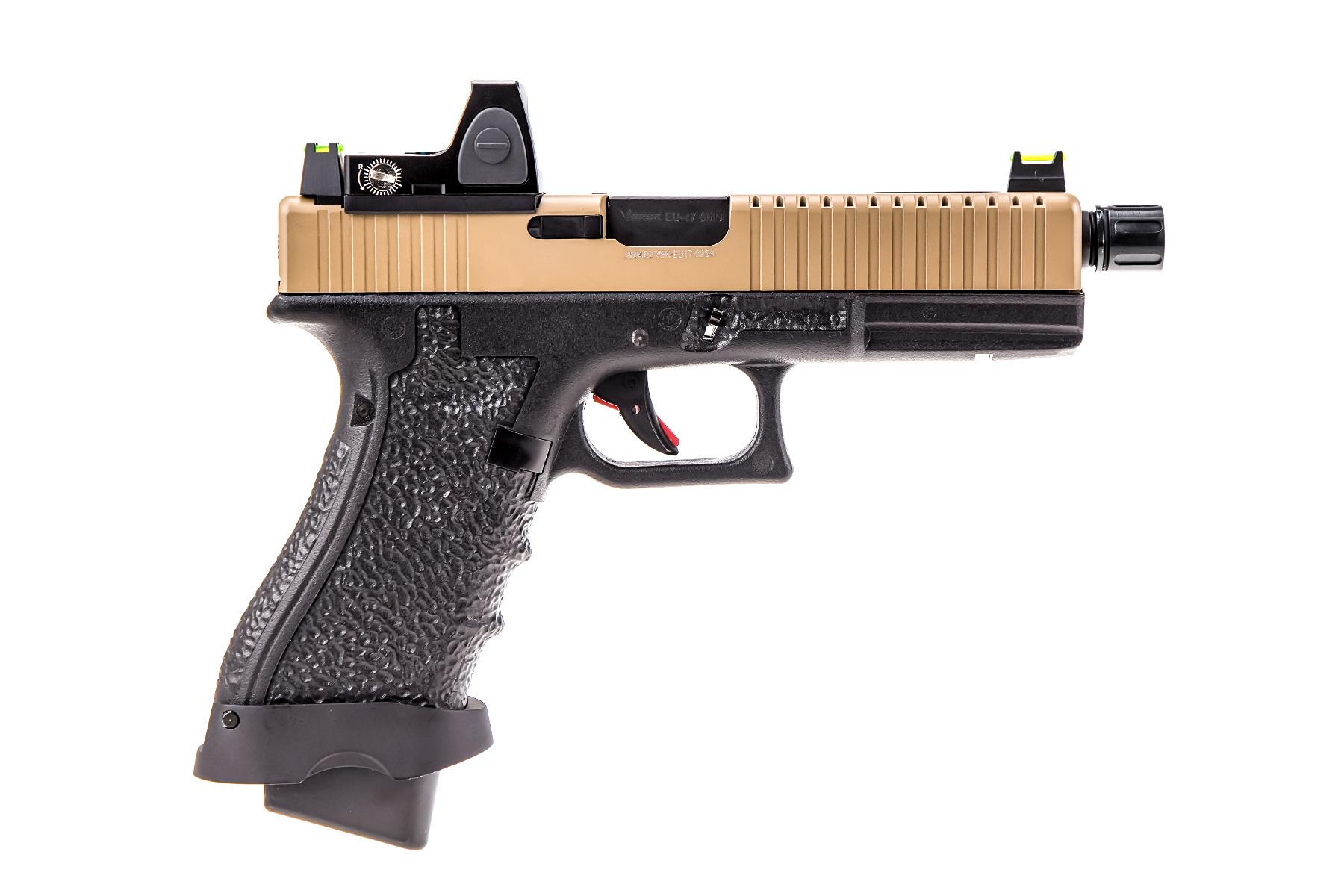 With both EU17 (Semi ONLY) and EU18 (Semi/ Fully Automatic) available, with or without DOT SIGHTs fitted, a TACTICAL or VENTED Slide and 8 colour finishes, there are plenty of EU Series models to choose from.