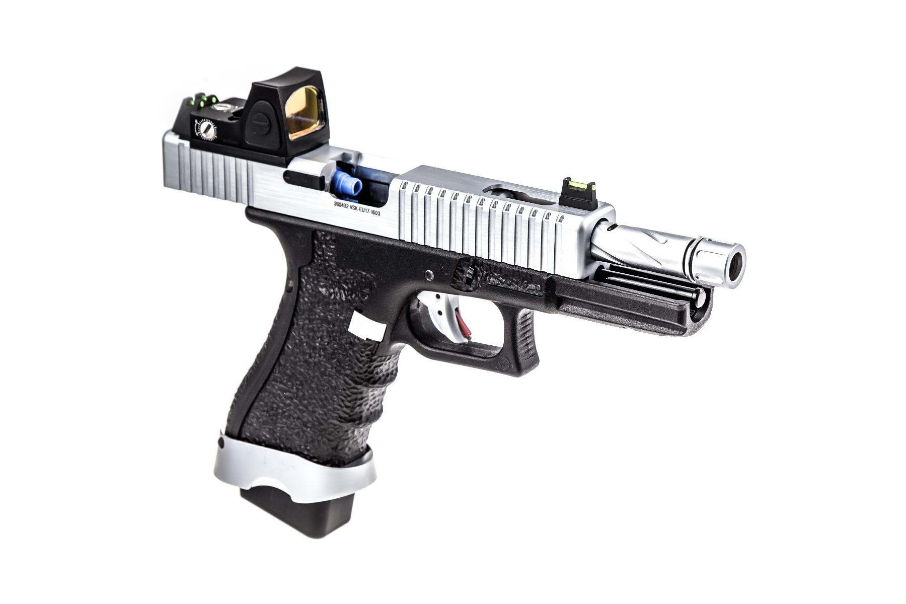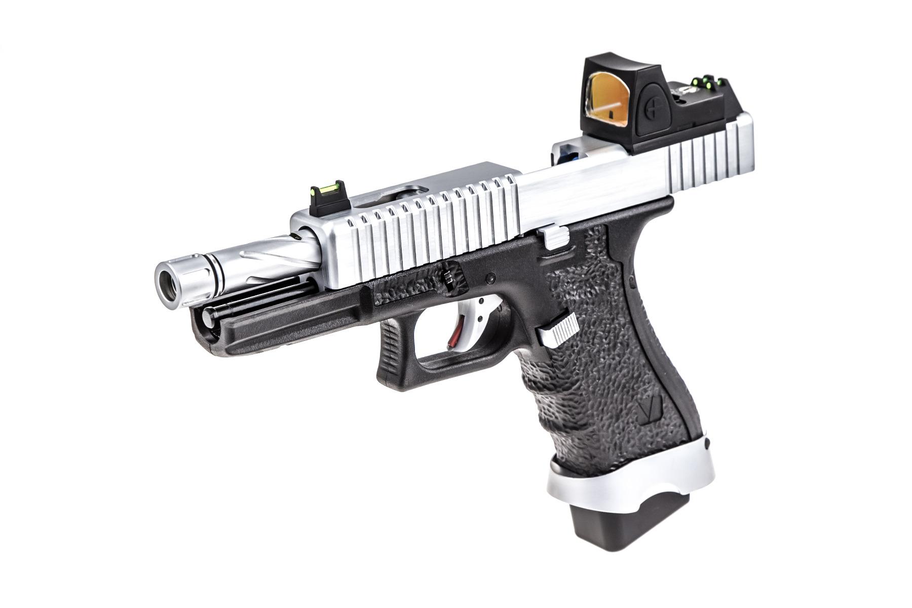 The TACTICAL option features a full-weight Aluminium Alloy Slide that features deep-groove ridge cuts on the forward & rear slide sections to help improve slide grip when racking your first BB. Colour choices are more reserved for the TACTICAL options, with all of the furniture & frame remaining black when choosing different slide colours (excluding GOLD & CHROME that have their furniture in the same colour as the slide).