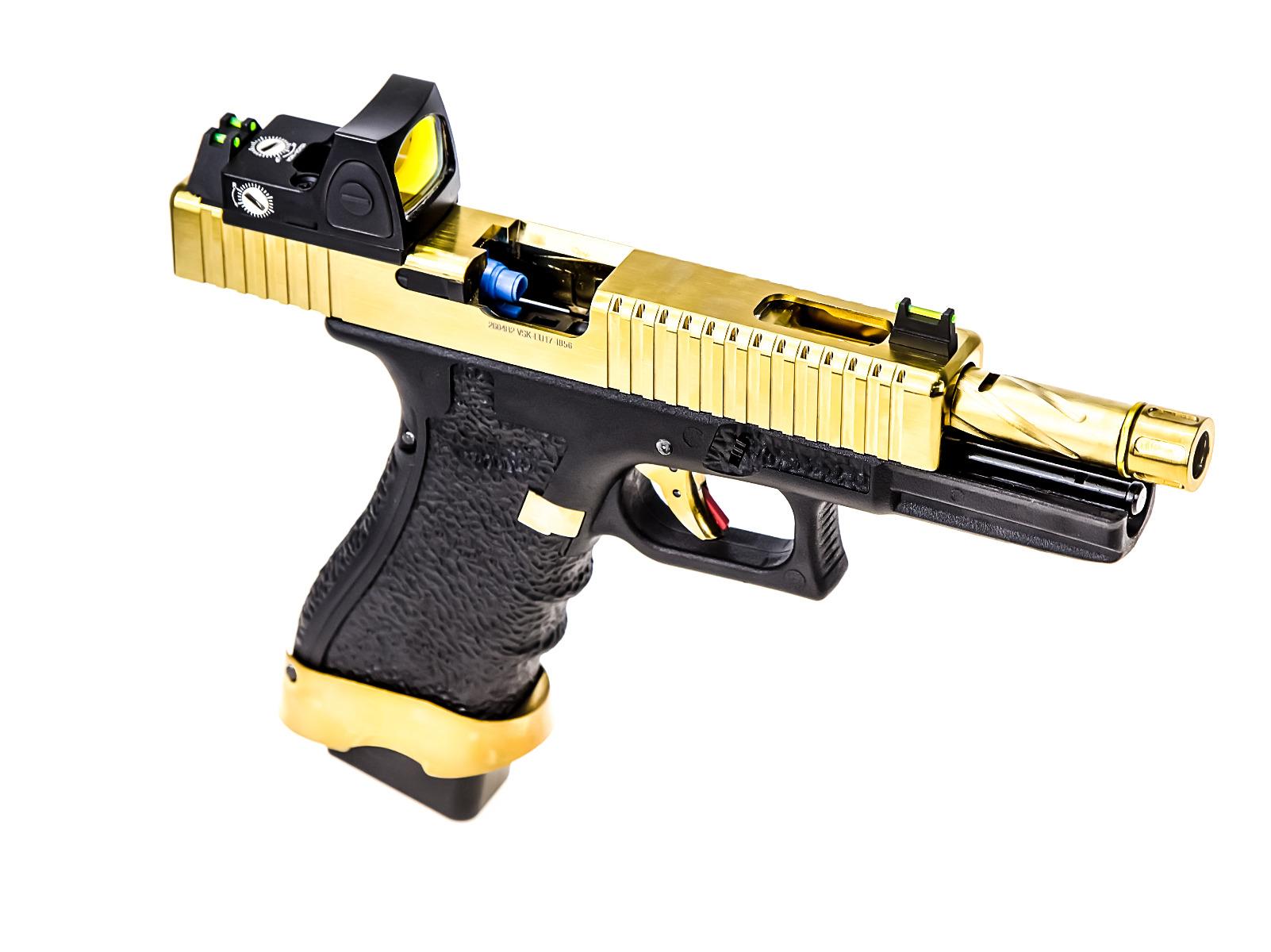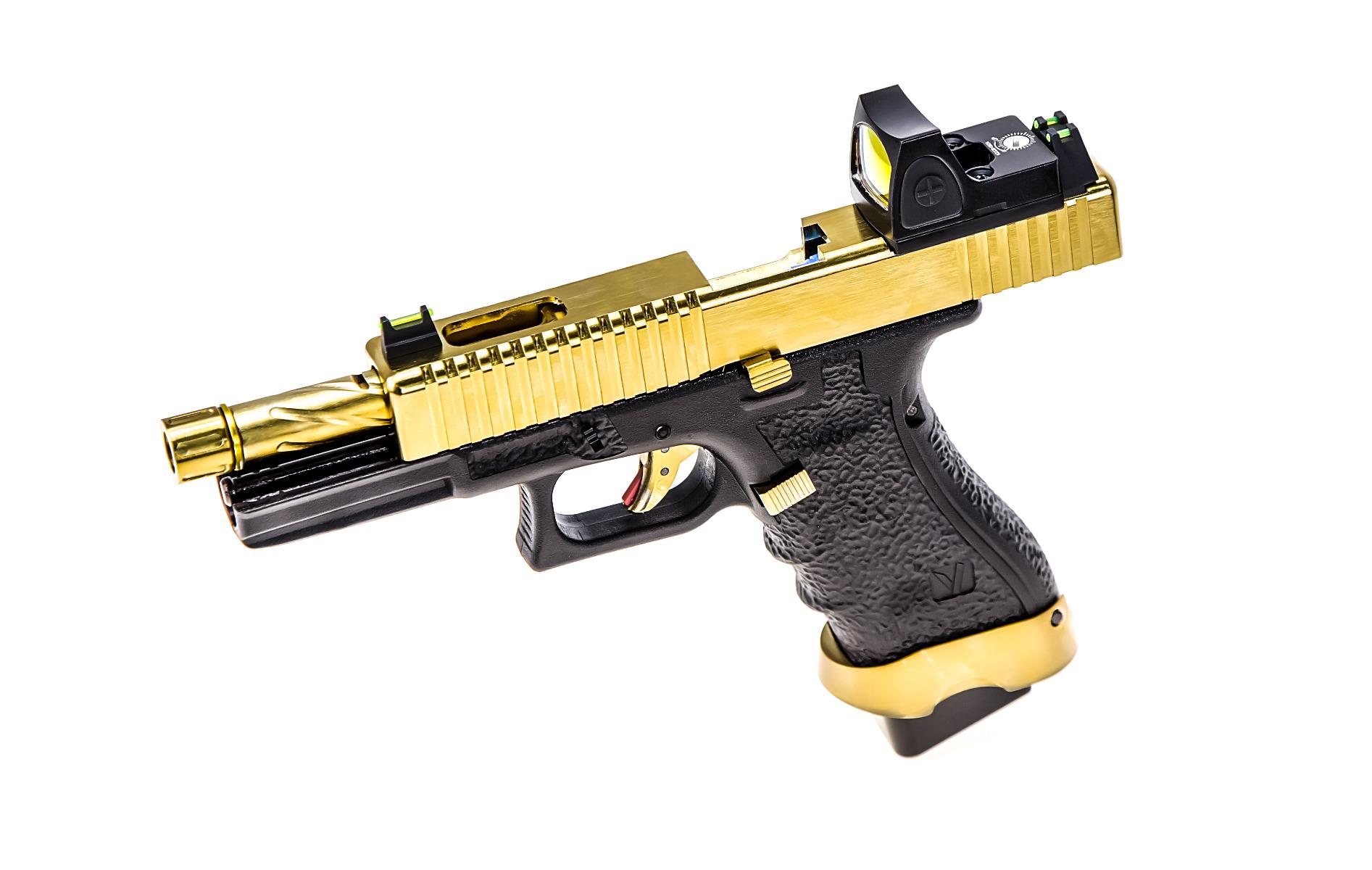 The TACTICAL option features a full-weight Aluminium Alloy Slide that features deep-groove ridge cuts on the forward & rear slide sections to help improve slide grip when racking your first BB. Colour choices are more reserved for the TACTICAL options, with all of the furniture & frame remaining black when choosing different slide colours (excluding GOLD & CHROME that have their furniture in the same colour as the slide).