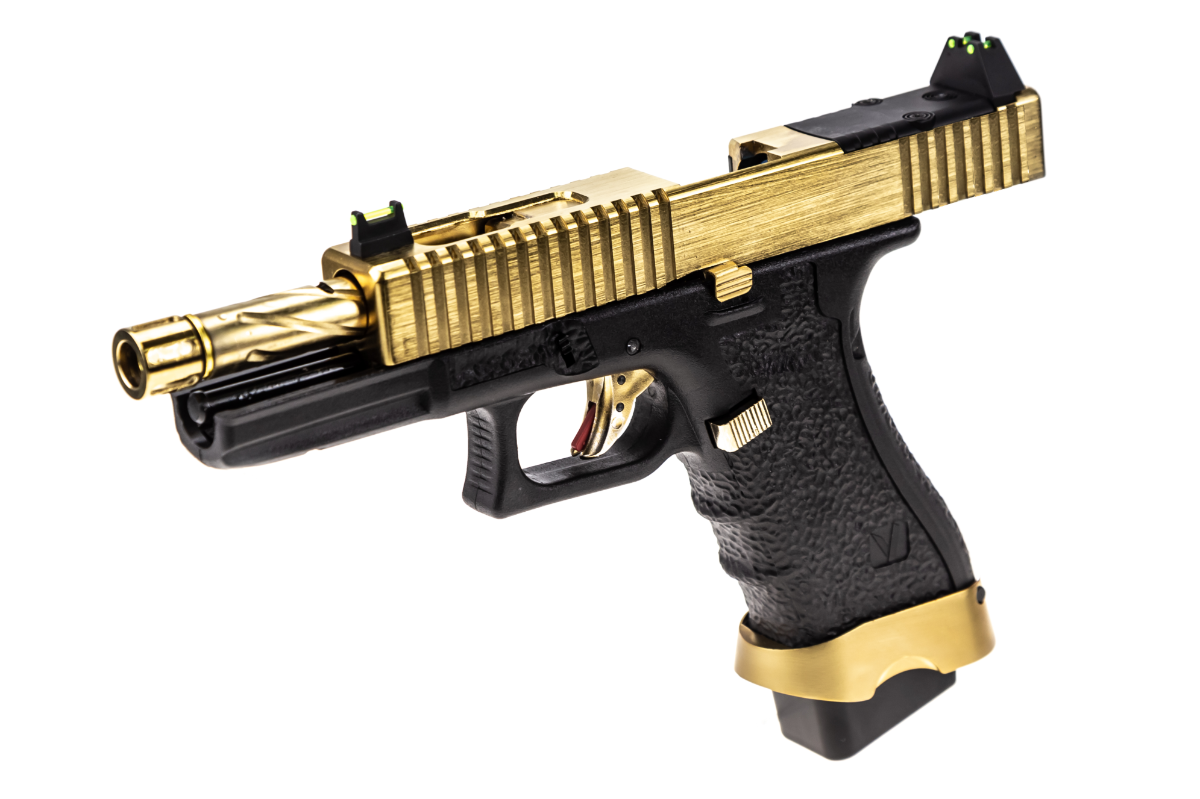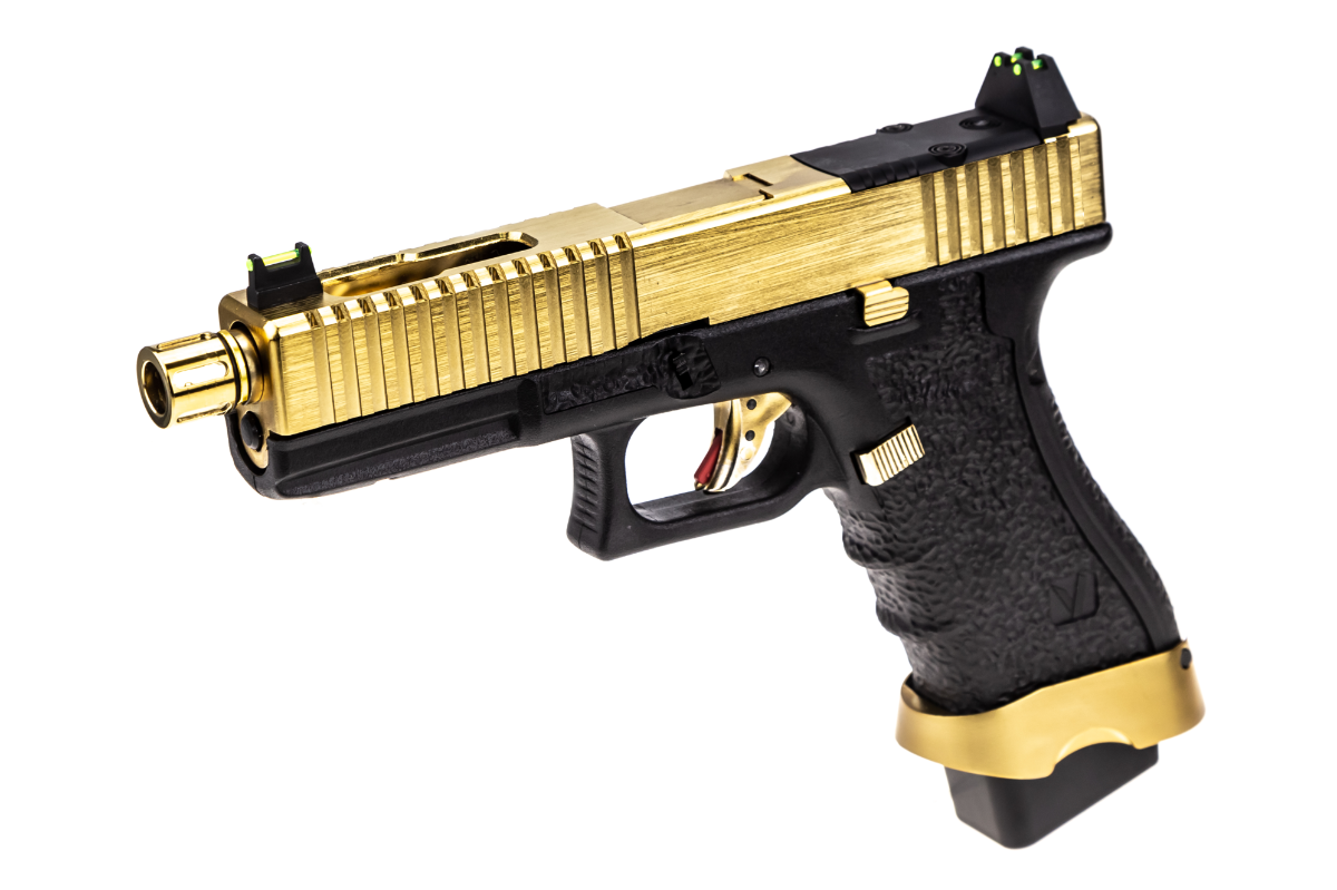 The TACTICAL option features a full-weight Aluminium Alloy Slide that features deep-groove ridge cuts on the forward & rear slide sections to help improve slide grip when racking your first BB. Colour choices are more reserved for the TACTICAL options, with all of the furniture & frame remaining black when choosing different slide colours (excluding GOLD & CHROME that have their furniture in the same colour as the slide).