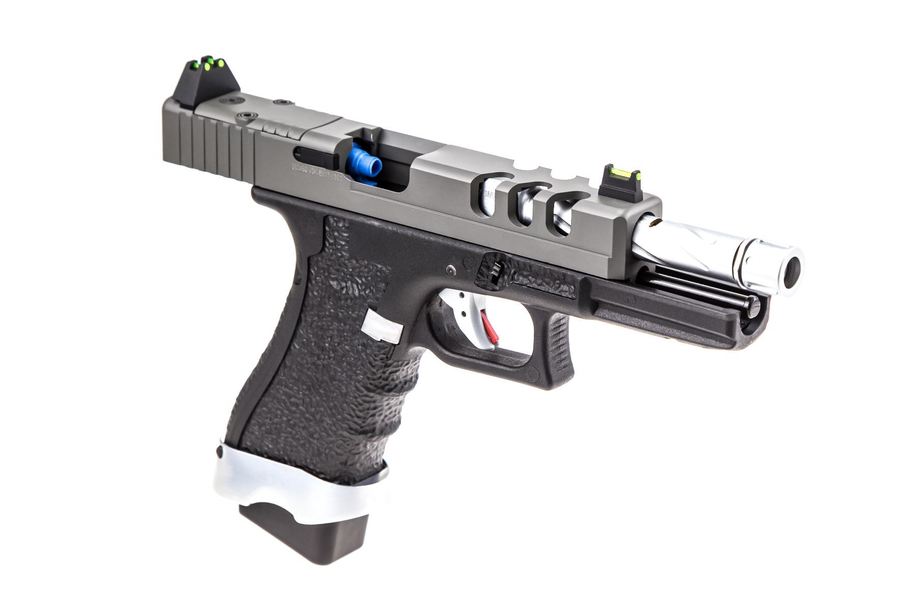 With both EU17 (Semi ONLY) and EU18 (Semi/ Fully Automatic) available, with or without DOT SIGHTs fitted, a TACTICAL or VENTED Slide and 8 colour finishes, there are plenty of EU Series models to choose from.