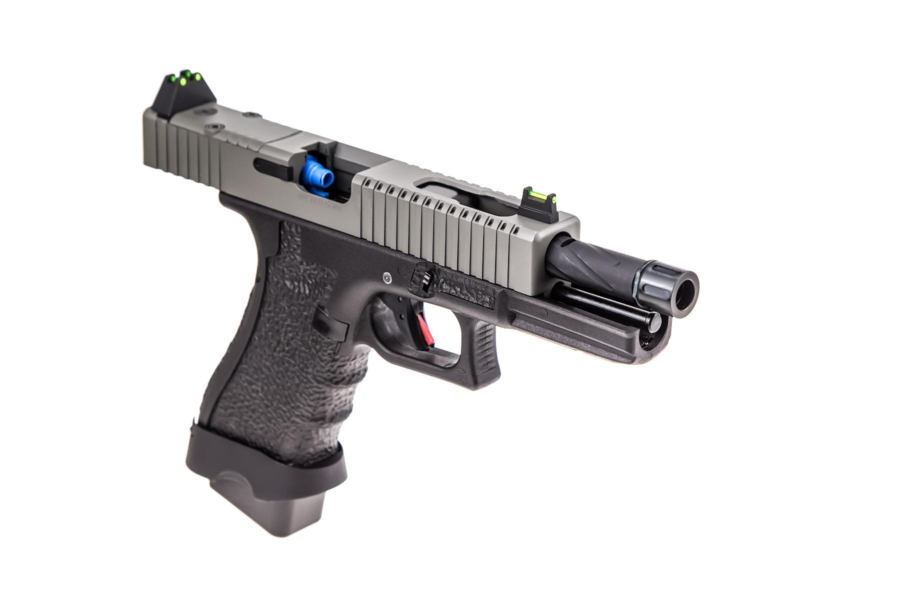 The TACTICAL option features a full-weight Aluminium Alloy Slide that features deep-groove ridge cuts on the forward & rear slide sections to help improve slide grip when racking your first BB. Colour choices are more reserved for the TACTICAL options, with all of the furniture & frame remaining black when choosing different slide colours (excluding GOLD & CHROME that have their furniture in the same colour as the slide).