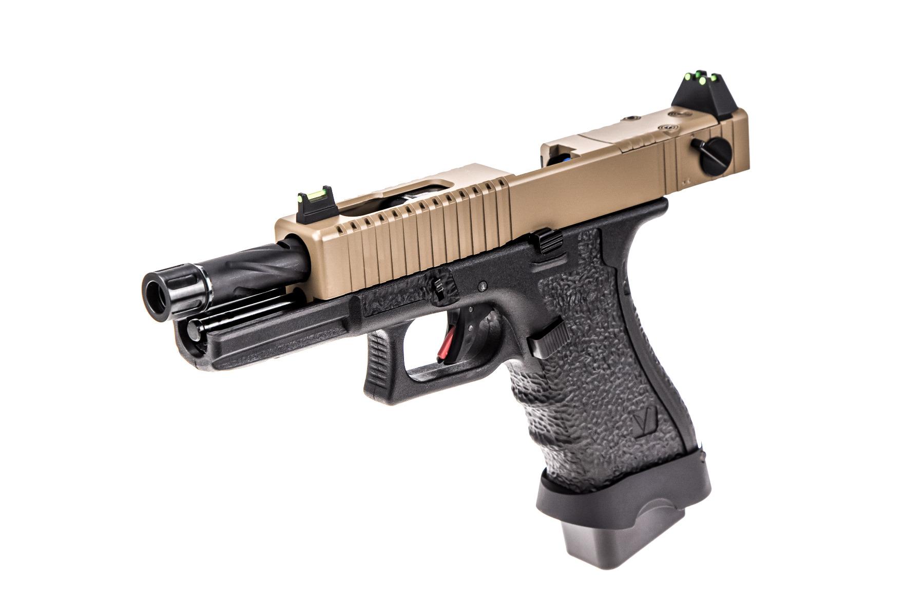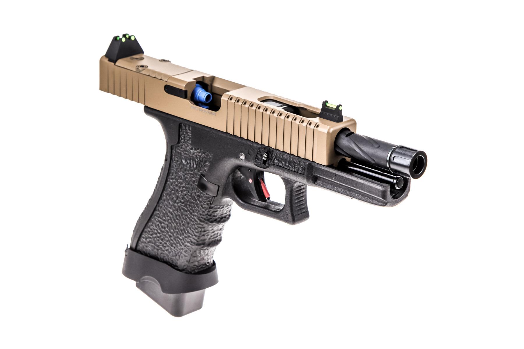The TACTICAL option features a full-weight Aluminium Alloy Slide that features deep-groove ridge cuts on the forward & rear slide sections to help improve slide grip when racking your first BB. Colour choices are more reserved for the TACTICAL options, with all of the furniture & frame remaining black when choosing different slide colours (excluding GOLD & CHROME that have their furniture in the same colour as the slide).