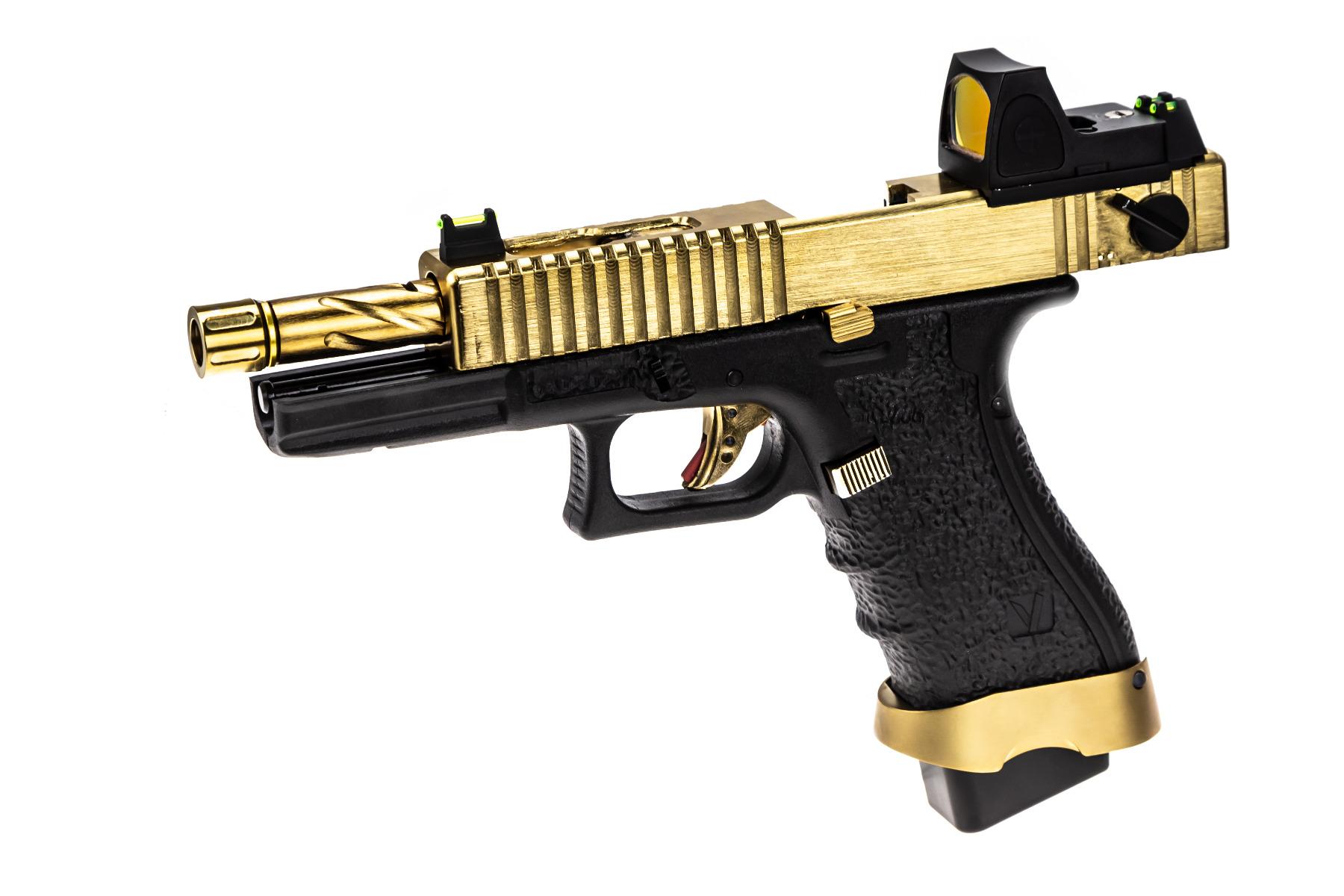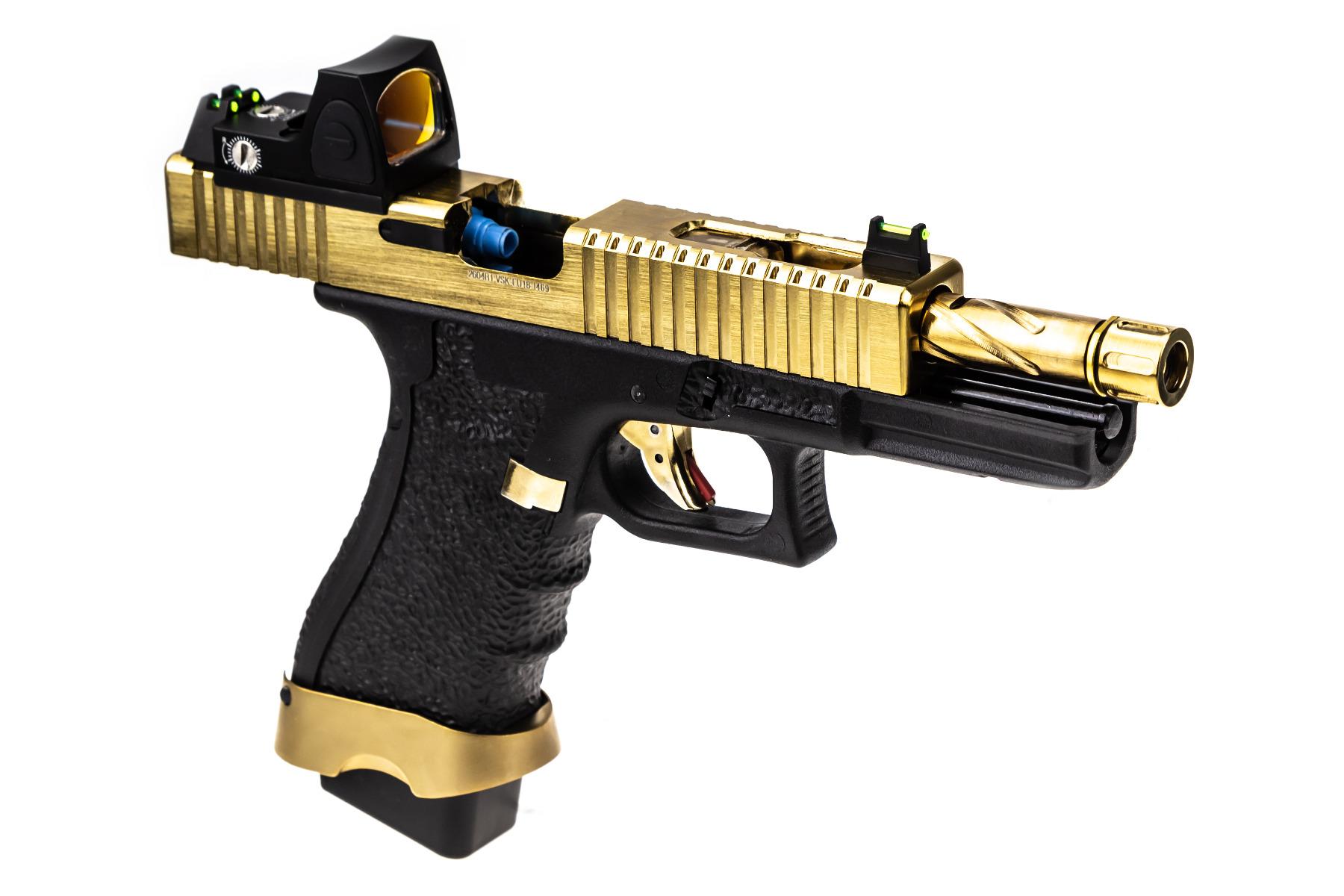 The TACTICAL option features a full-weight Aluminium Alloy Slide that features deep-groove ridge cuts on the forward & rear slide sections to help improve slide grip when racking your first BB. Colour choices are more reserved for the TACTICAL options, with all of the furniture & frame remaining black when choosing different slide colours (excluding GOLD & CHROME that have their furniture in the same colour as the slide).