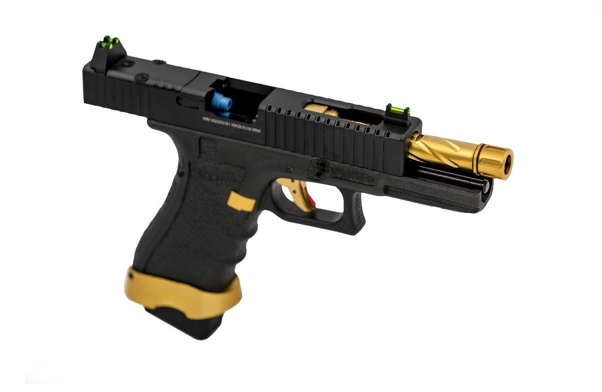 The TACTICAL option features a full-weight Aluminium Alloy Slide that features deep-groove ridge cuts on the forward & rear slide sections to help improve slide grip when racking your first BB. Colour choices are more reserved for the TACTICAL options, with all of the furniture & frame remaining black when choosing different slide colours (excluding GOLD & CHROME that have their furniture in the same colour as the slide).