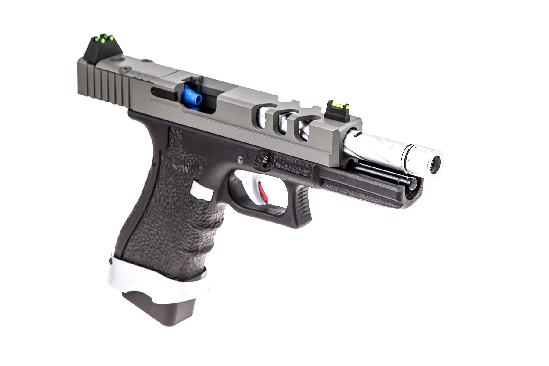 The TACTICAL option features a full-weight Aluminium Alloy Slide that features deep-groove ridge cuts on the forward & rear slide sections to help improve slide grip when racking your first BB. Colour choices are more reserved for the TACTICAL options, with all of the furniture & frame remaining black when choosing different slide colours (excluding GOLD & CHROME that have their furniture in the same colour as the slide).