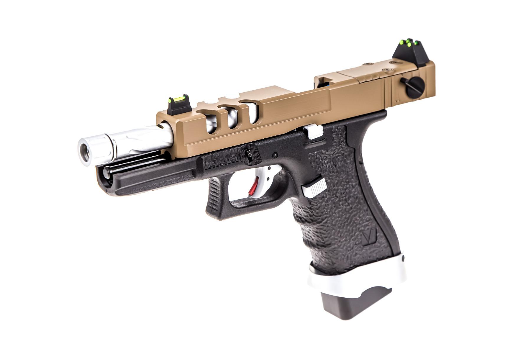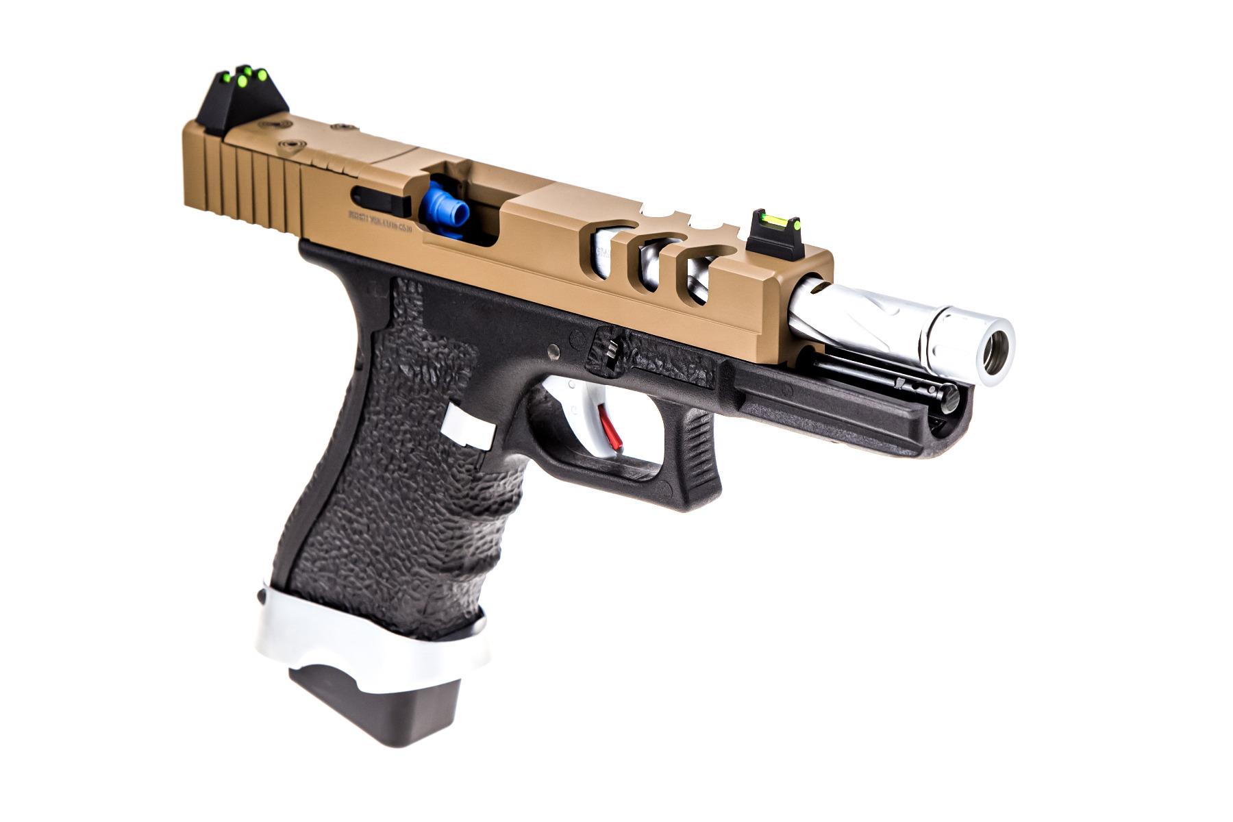 The TACTICAL option features a full-weight Aluminium Alloy Slide that features deep-groove ridge cuts on the forward & rear slide sections to help improve slide grip when racking your first BB. Colour choices are more reserved for the TACTICAL options, with all of the furniture & frame remaining black when choosing different slide colours (excluding GOLD & CHROME that have their furniture in the same colour as the slide).