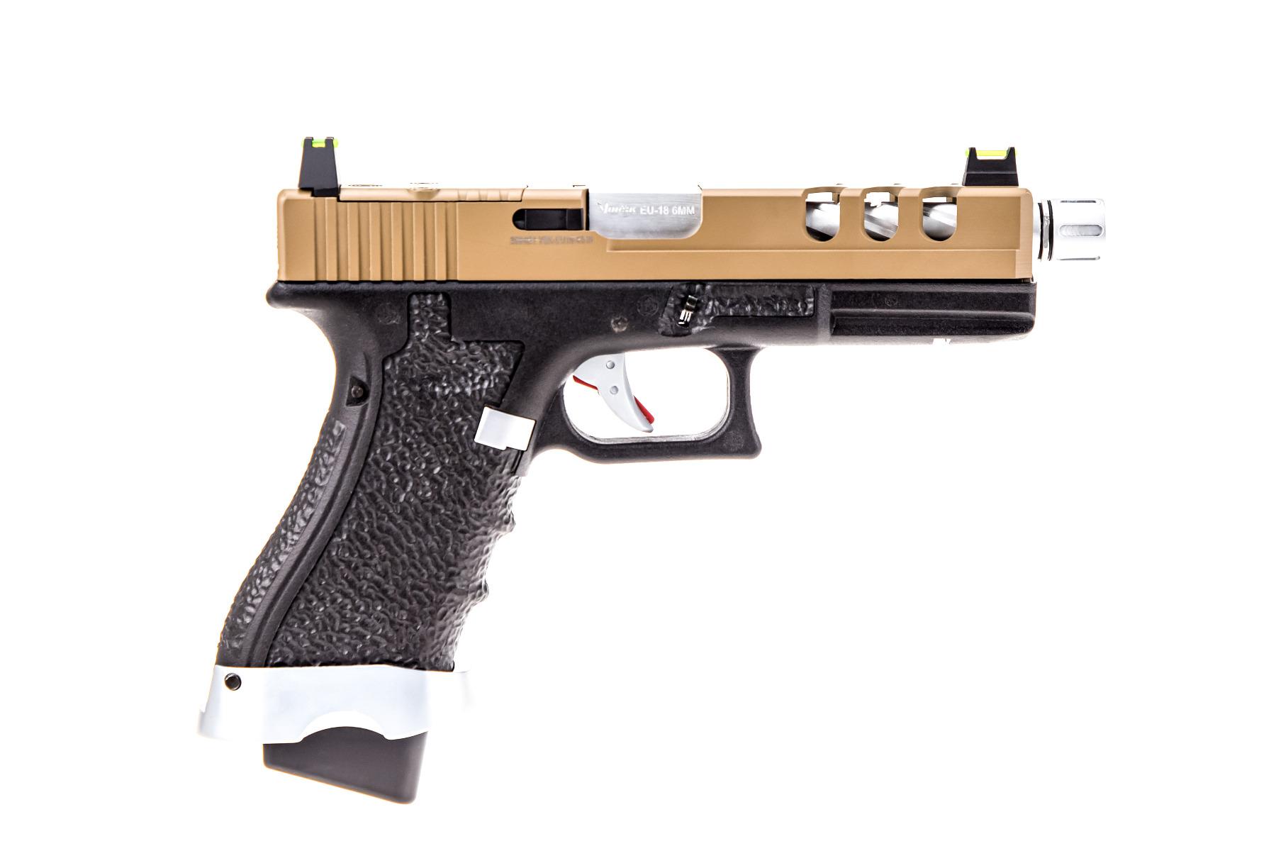 With both EU17 (Semi ONLY) and EU18 (Semi/ Fully Automatic) available, with or without DOT SIGHTs fitted, a TACTICAL or VENTED Slide and 8 colour finishes, there are plenty of EU Series models to choose from.