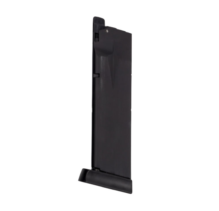 The magazines body is a metal construction, with a polymer feed lip, follower and a protective base plate. The VP26 Series baseplate has been extended to protect the magazine base, accentuate your sidearms look and improve the reload experience.