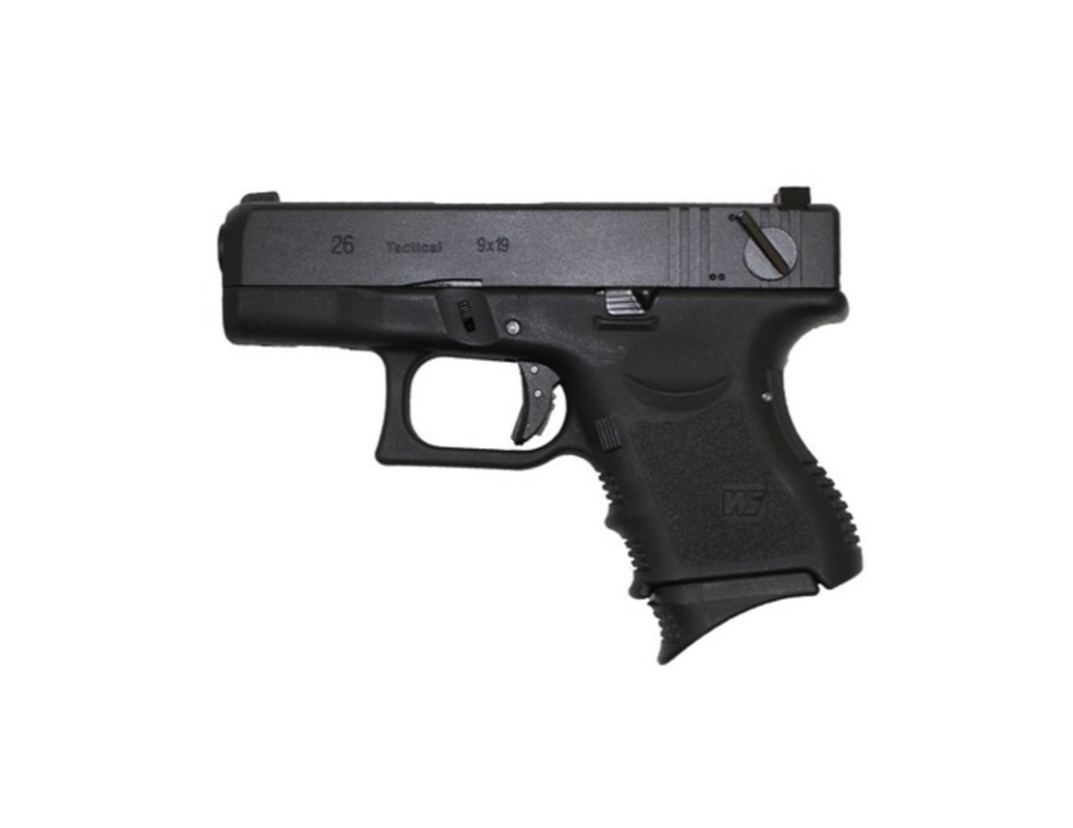 The WE G26 has a small frame and short barrel that make it easy to carry in the airsoft field.