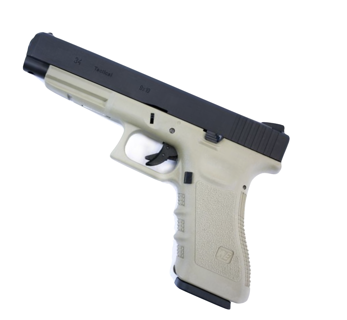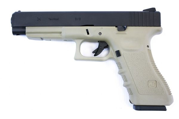 WE 34 SEMI AUTO TAN GRIP BLACK SLIDE PISTOL