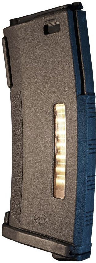 Works with MTW-Spec empty mag detection Fits the MTW and Heretic Labs Article I Approximately 120 round BB capacity High quality Dupont Zytel Polymer construction No winding, no rattling mid-cap magazine Enhanced Polymer Baseplate with angled surface and dot matrix High efficiency compression spring